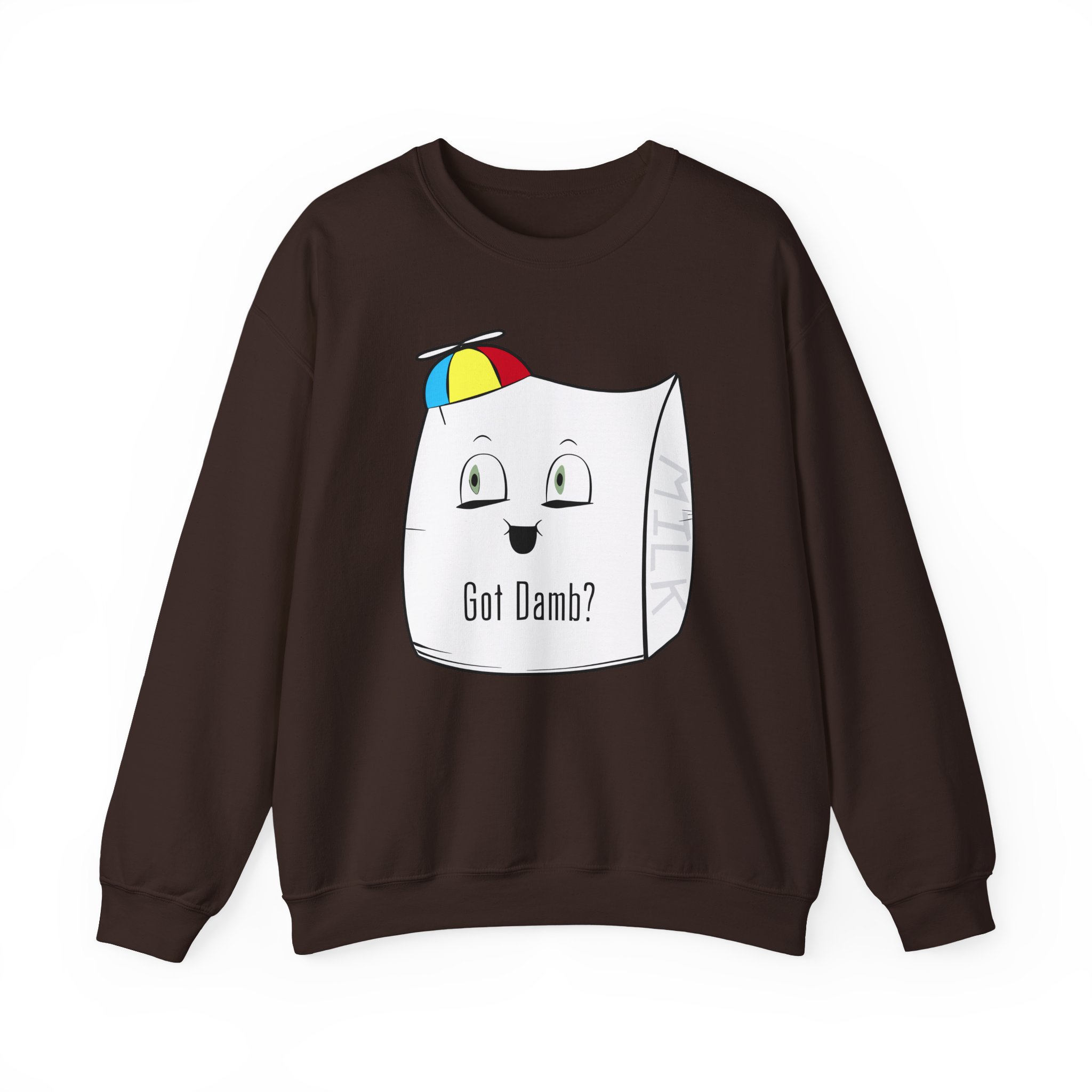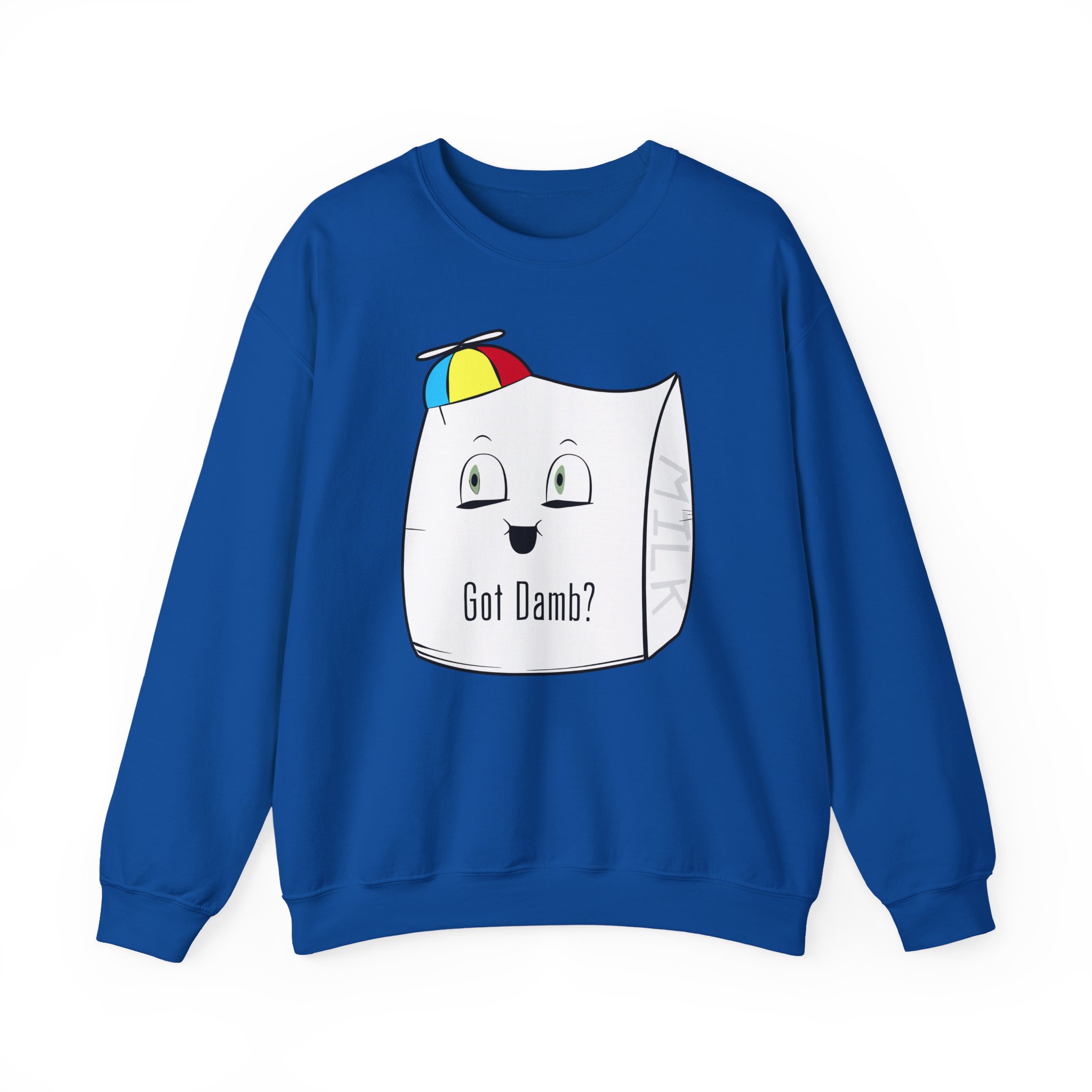 Ideal for any situation, a Smii7y Milk Bag unisex heavy blend crewneck sweatshirt is pure comfort. These garments are made from polyester and cotton. This combination helps designs come out looking fresh and beautiful. The collar is ribbed knit, so it retains its shape even after washing. There are no itchy side seams on these sweaters.