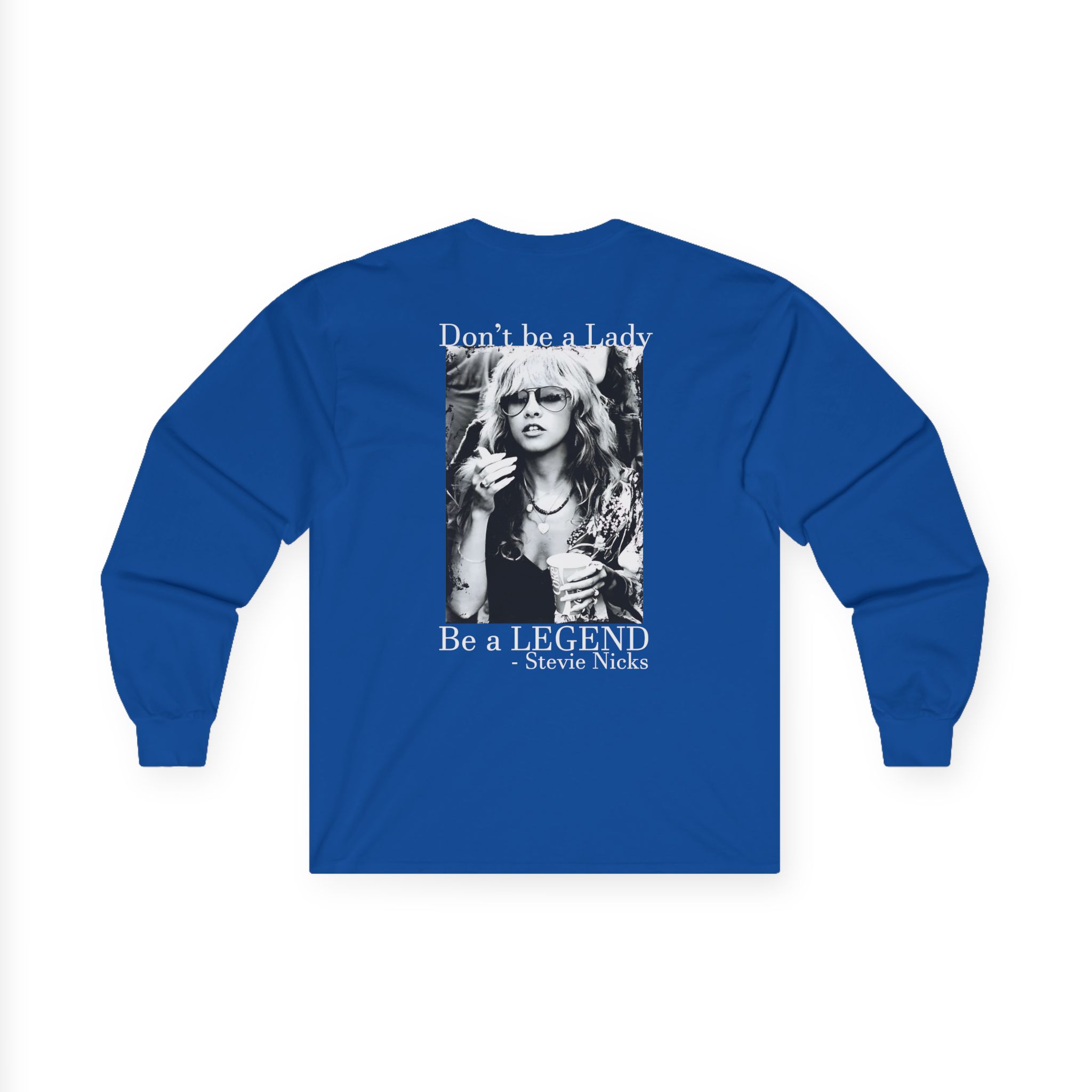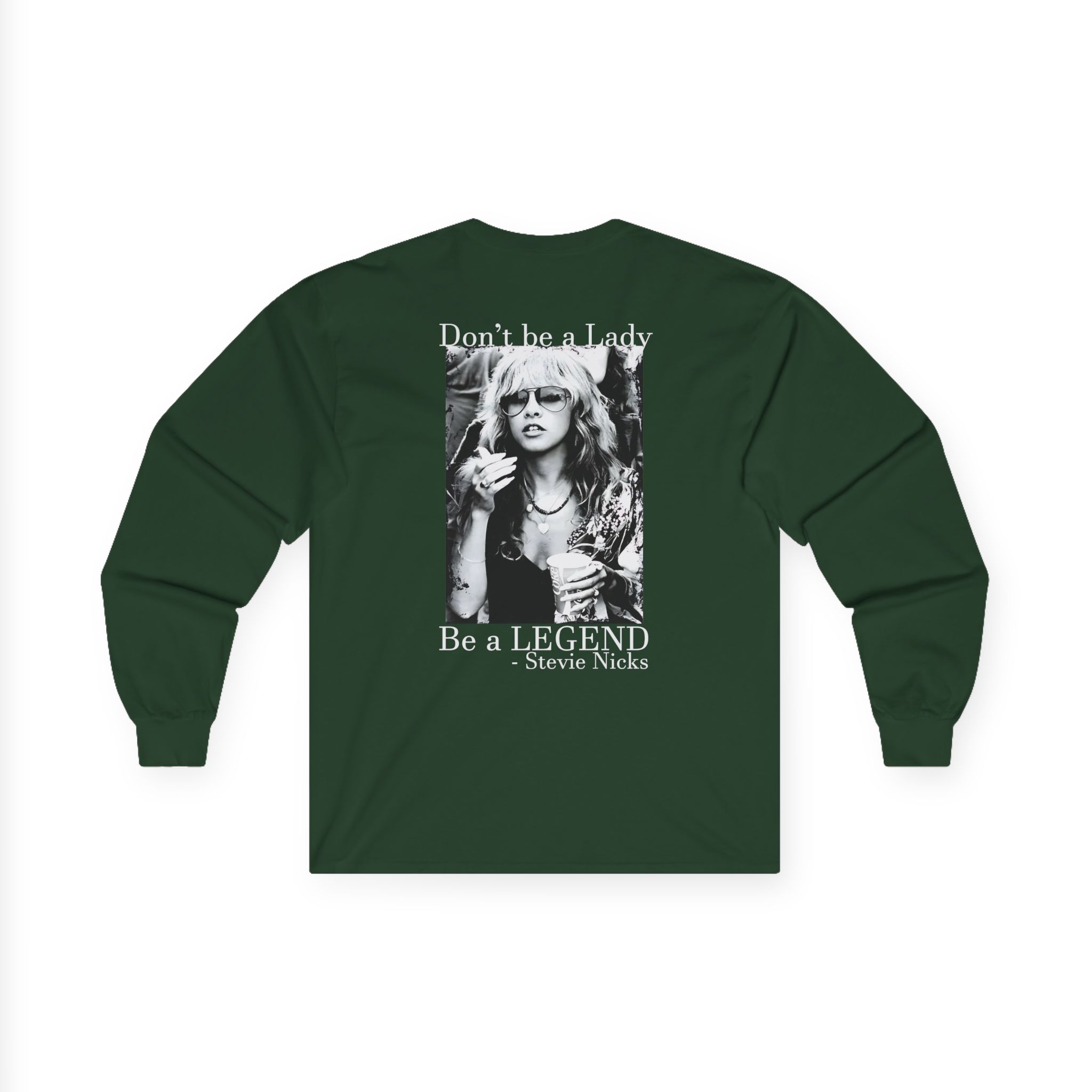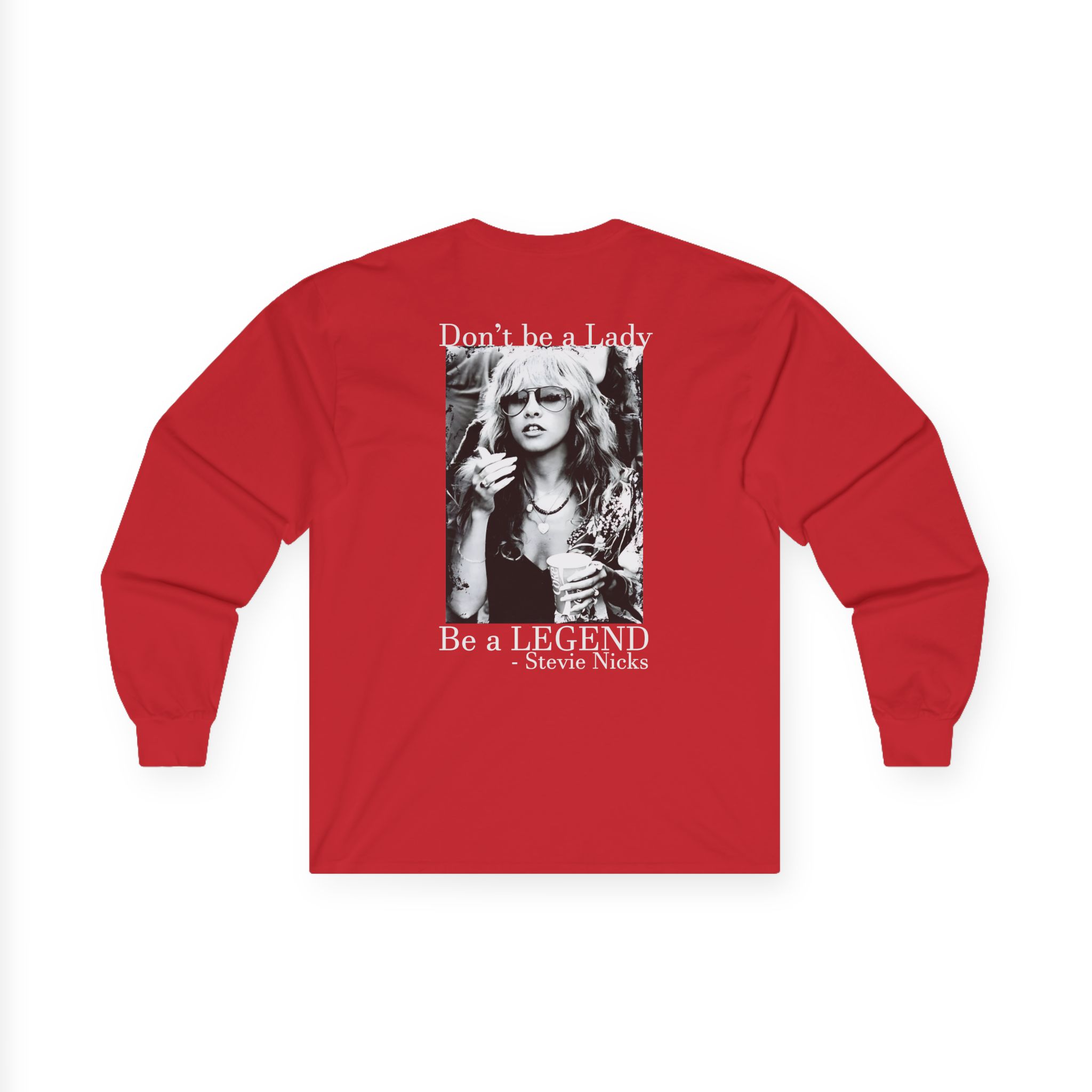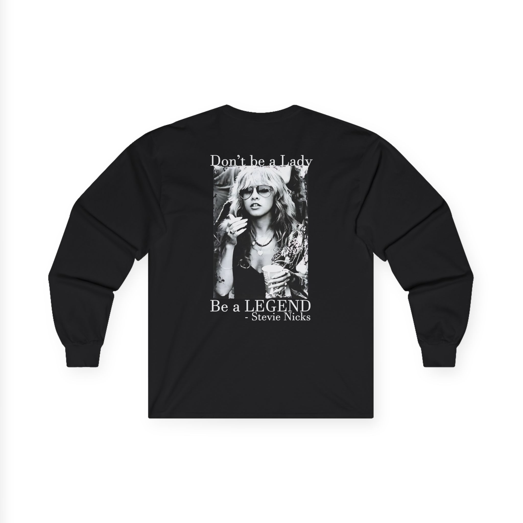A bit more formal than a standard-issue t-shirt, the Stevie Nicks Don’t Be A Lady, Be A Legend ultra cotton long sleeve tee is a clear comfort winner. The sleeves also act as a nice frame. There are no side seams. The shoulders are taped for improved durability. This makes for a good fitting around the shoulders and neck. The cotton used for these shirts is environmentally friendly.