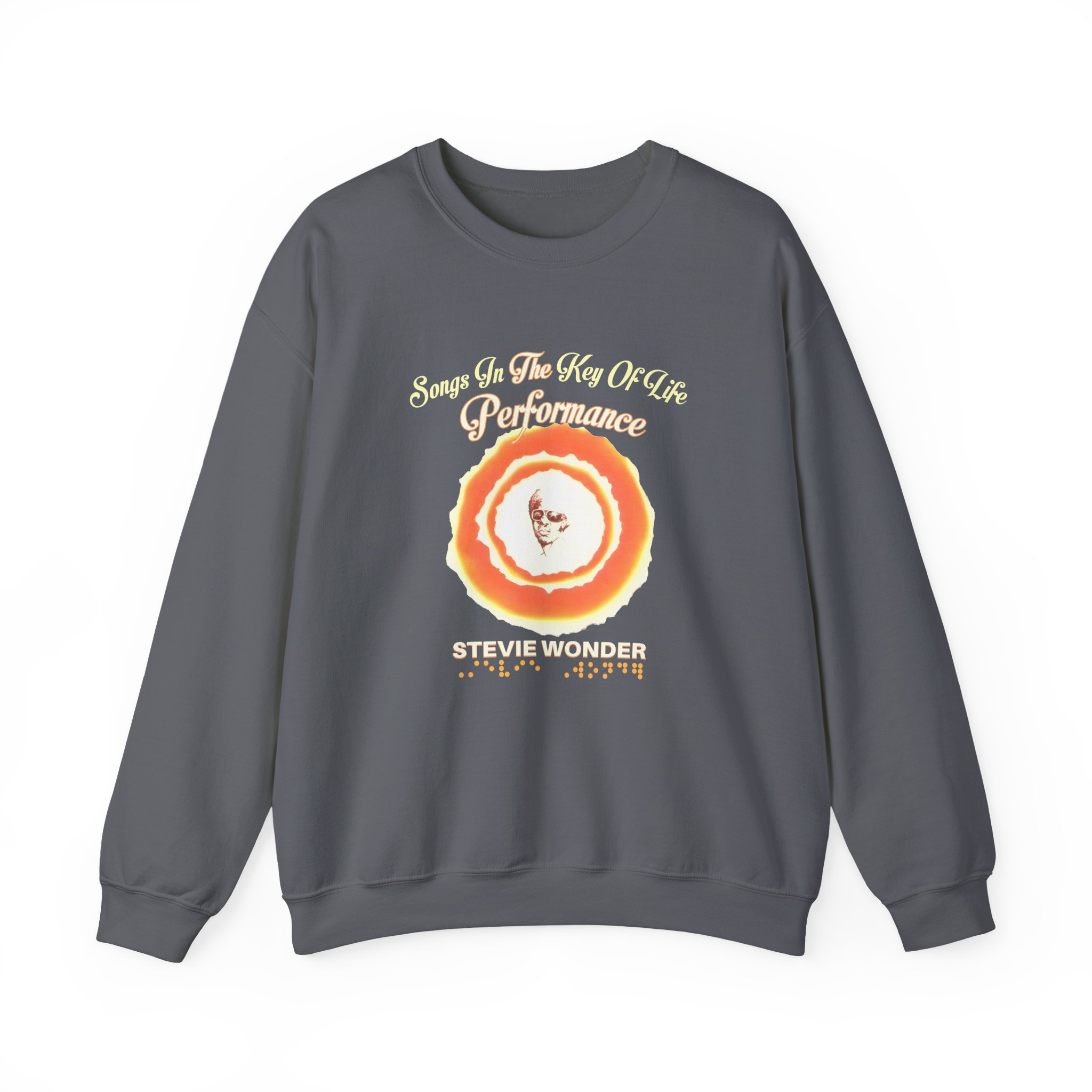 Ideal for any situation, a Stevie Wonder Songs in the Key of Life unisex heavy blend crewneck sweatshirt is pure comfort. These garments are made from polyester and cotton. This combination helps designs come out looking fresh and beautiful. The collar is ribbed knit, so it retains its shape even after washing. There are no itchy side seams on these sweaters.