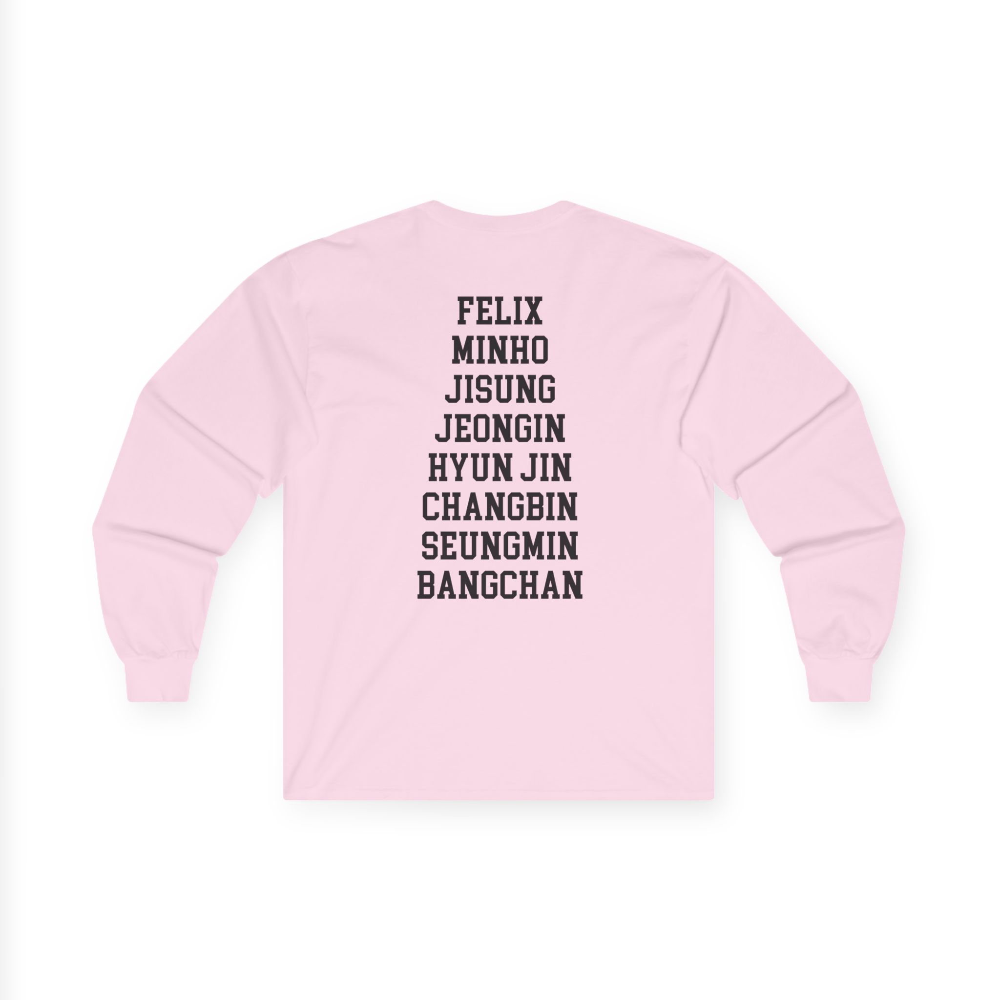 A bit more formal than a standard-issue t-shirt, the Stray Kids ultra cotton long sleeve tee is a clear comfort winner. The sleeves also act as a nice frame. There are no side seams. The shoulders are taped for improved durability. This makes for a good fitting around the shoulders and neck. The cotton used for these shirts is environmentally friendly.