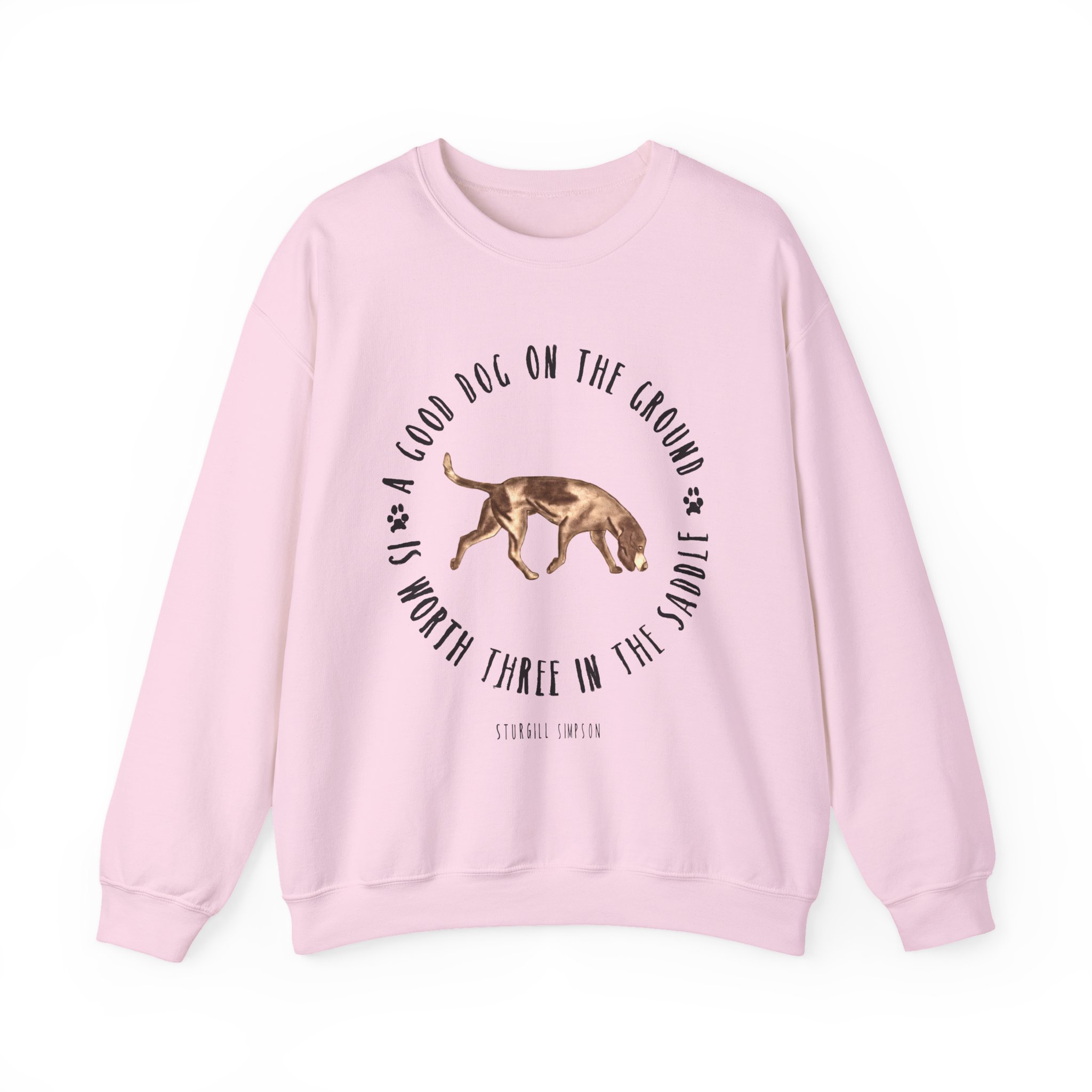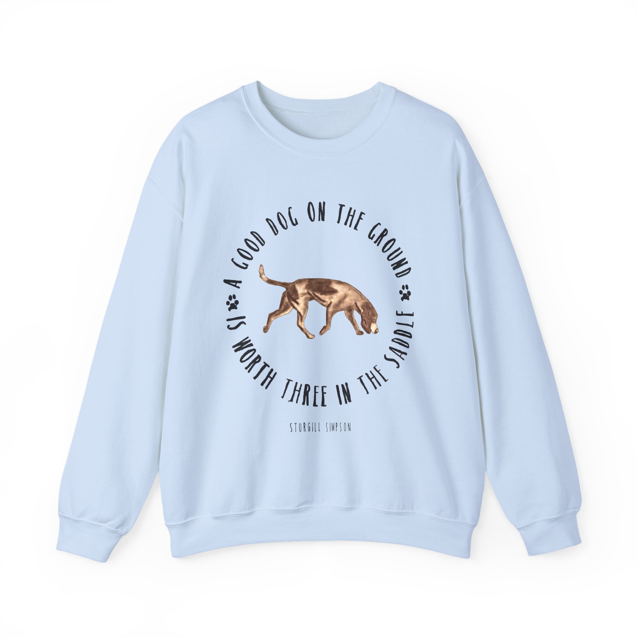 Ideal for any situation, a Sturgill Simpson Good Dog unisex heavy blend crewneck sweatshirt is pure comfort. These garments are made from polyester and cotton. This combination helps designs come out looking fresh and beautiful. The collar is ribbed knit, so it retains its shape even after washing. There are no itchy side seams on these sweaters.
