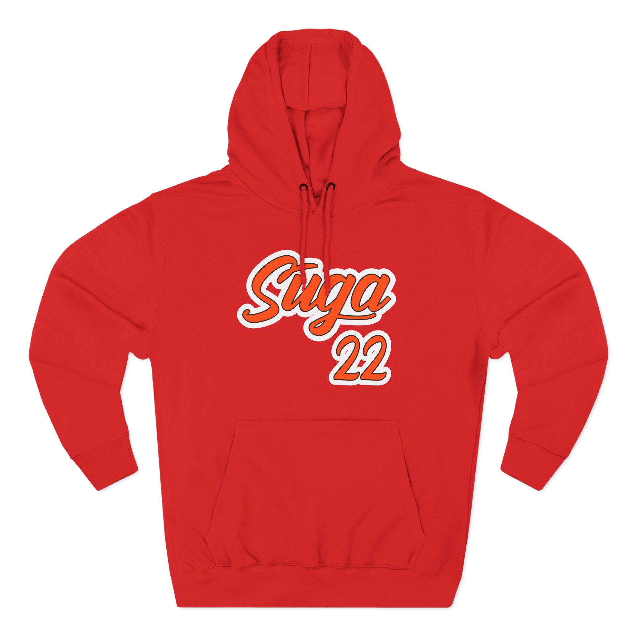 Beat the cold with this Suga Sean Suga 22 premium pullover hoodie that’s just the right layer of warm and cozy. Made with three-panel fleece lining, this pullover is double stitched for durability and roomy. Pick one in your favorite color to match your style.