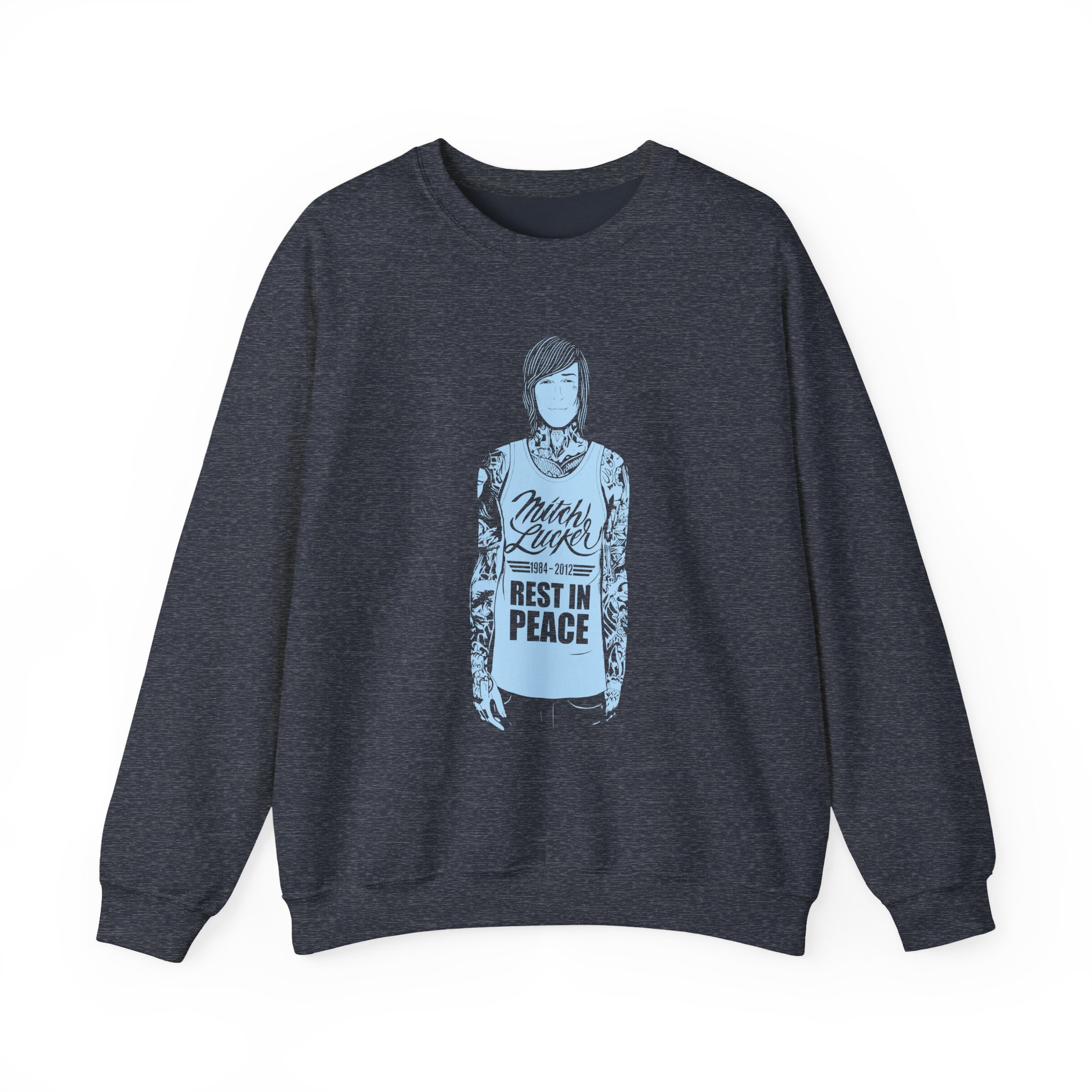 Ideal for any situation, a Suicide Silence Mitch Lucker unisex heavy blend crewneck sweatshirt is pure comfort. These garments are made from polyester and cotton. This combination helps designs come out looking fresh and beautiful. The collar is ribbed knit, so it retains its shape even after washing. There are no itchy side seams on these sweaters.