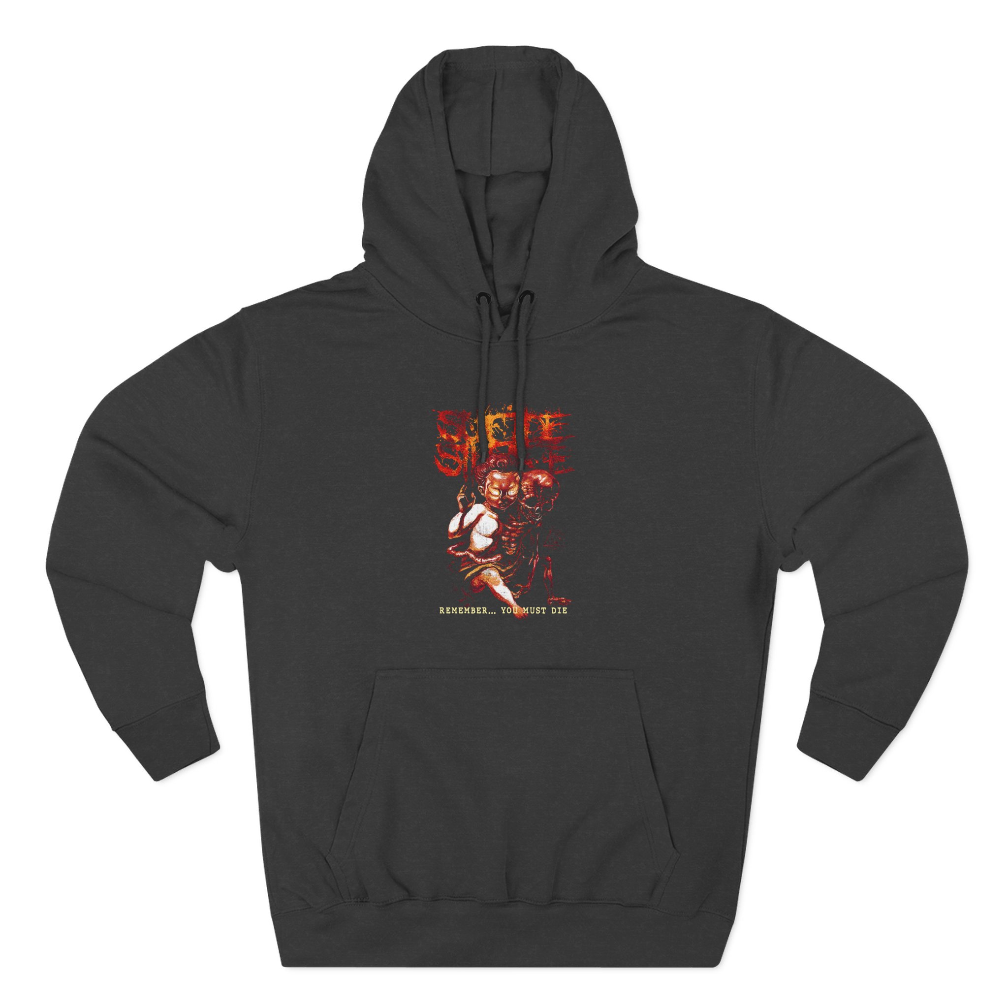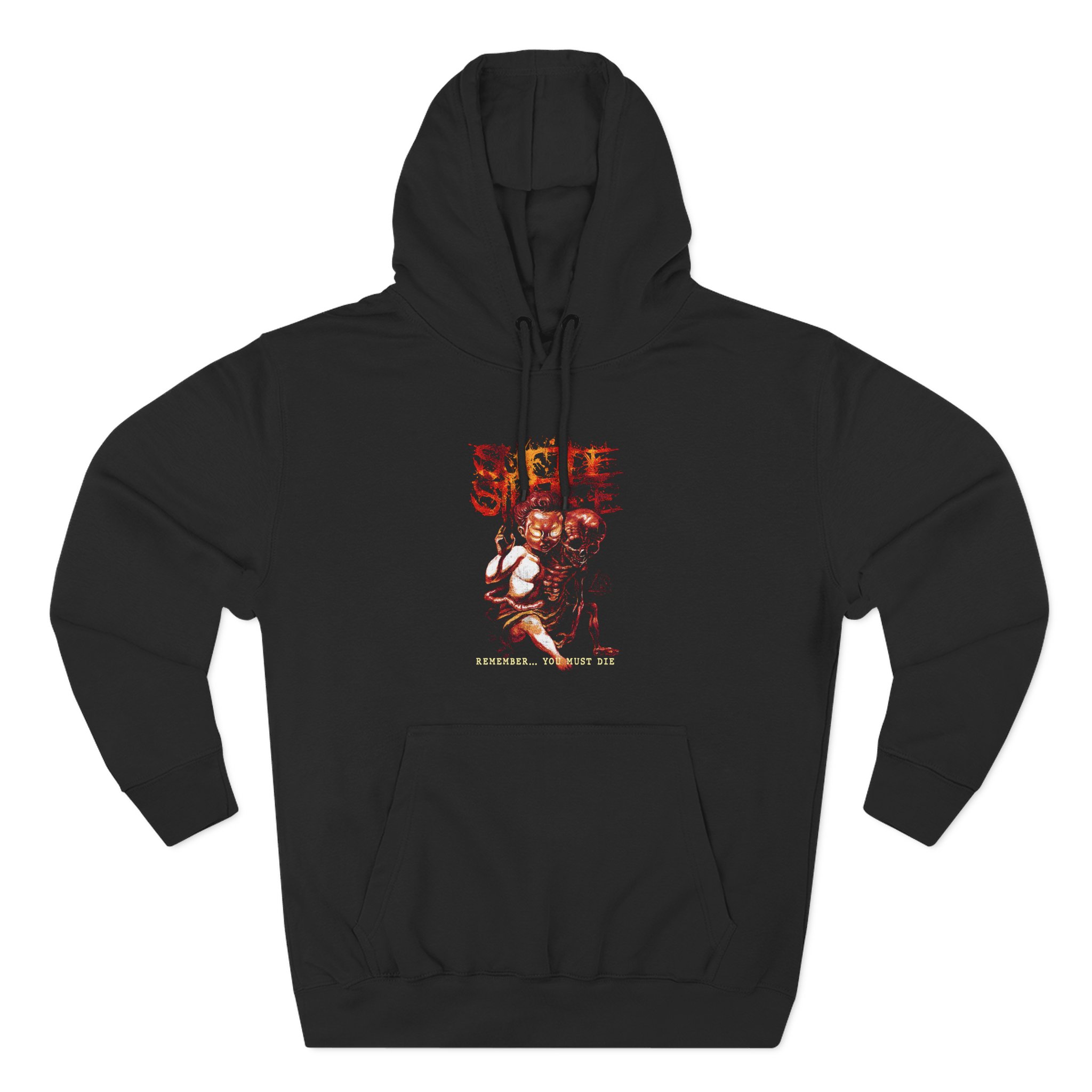 Beat the cold with this Suicide Silence Remember You Must Die premium pullover hoodie that’s just the right layer of warm and cozy. Made with three-panel fleece lining, this pullover is double stitched for durability and roomy. Pick one in your favorite color to match your style.