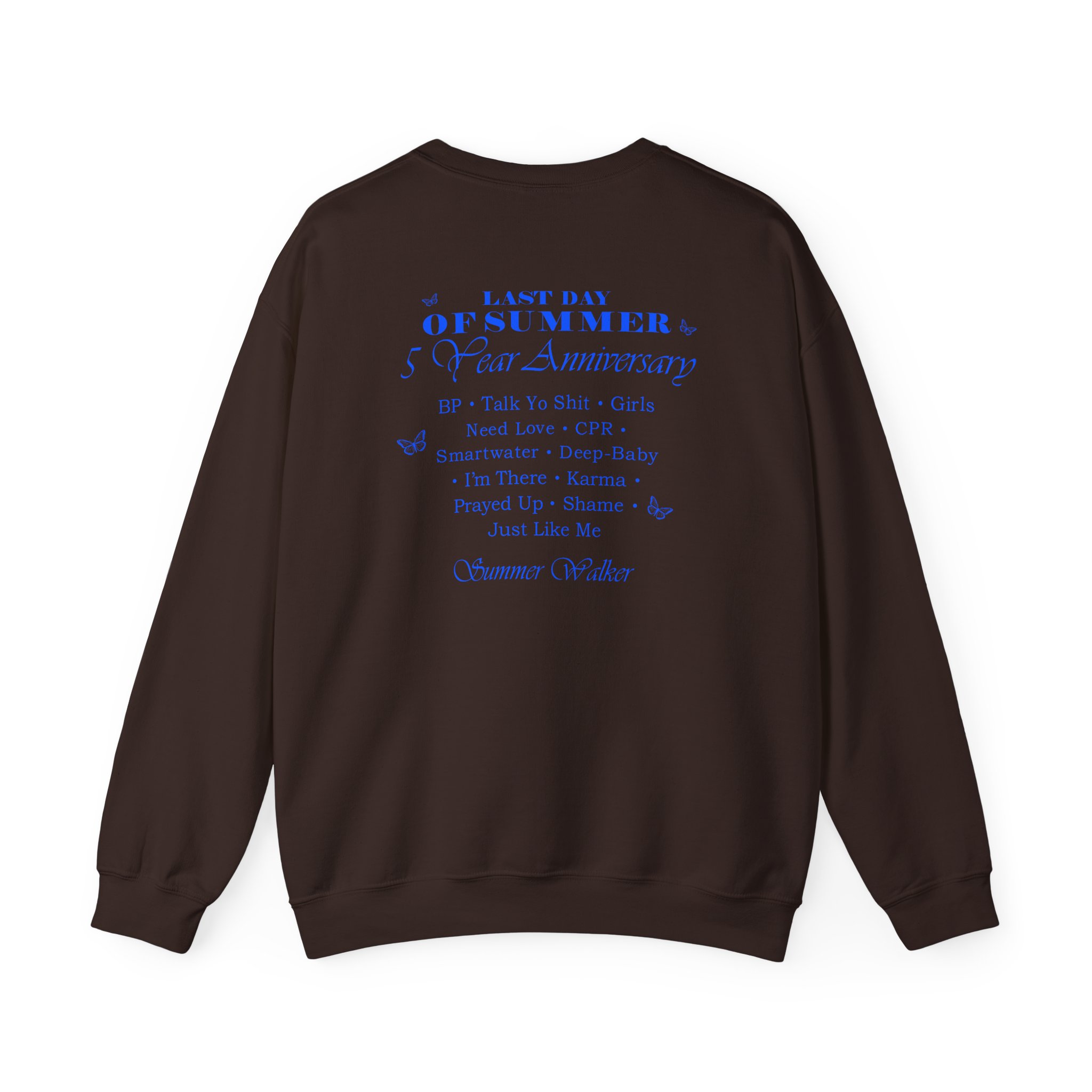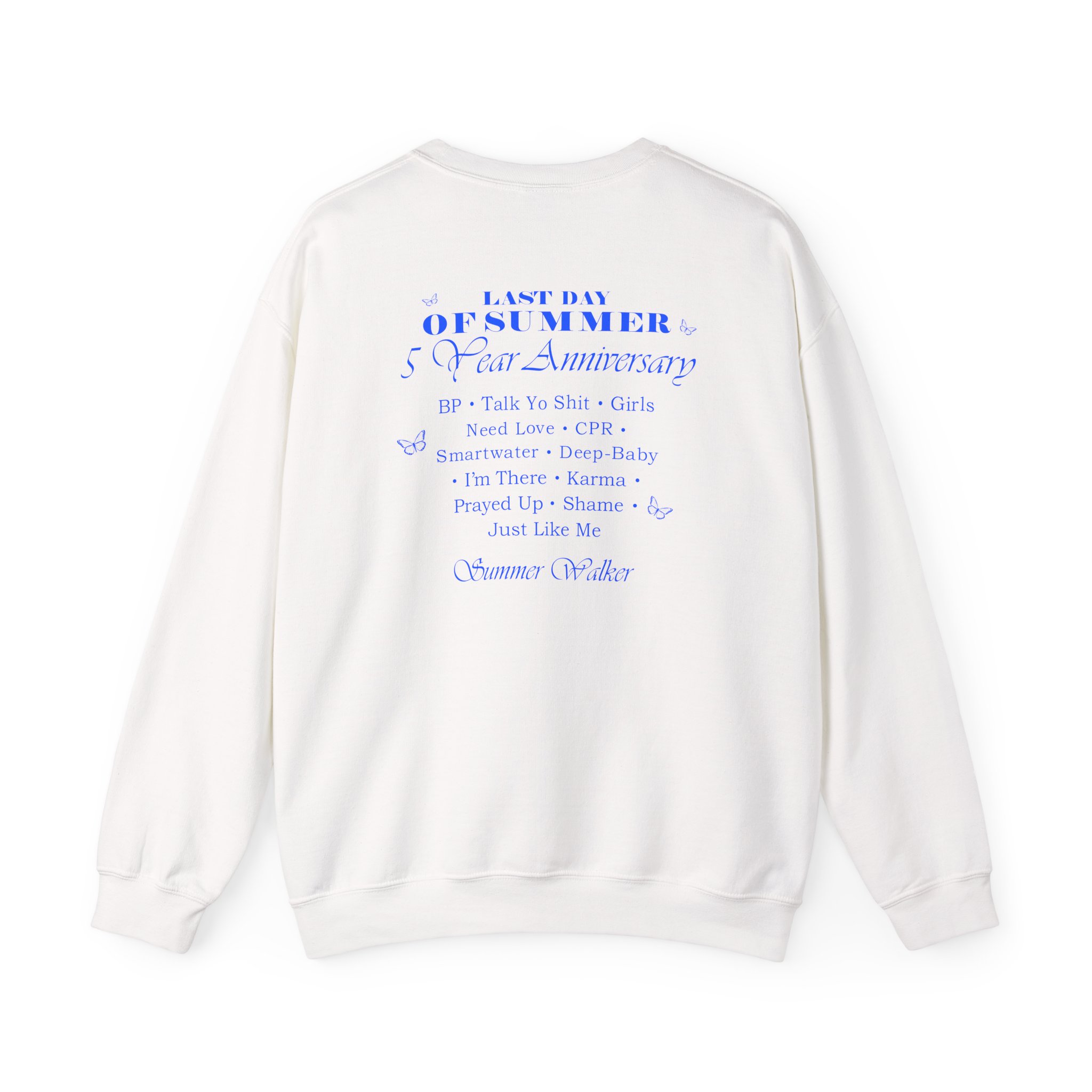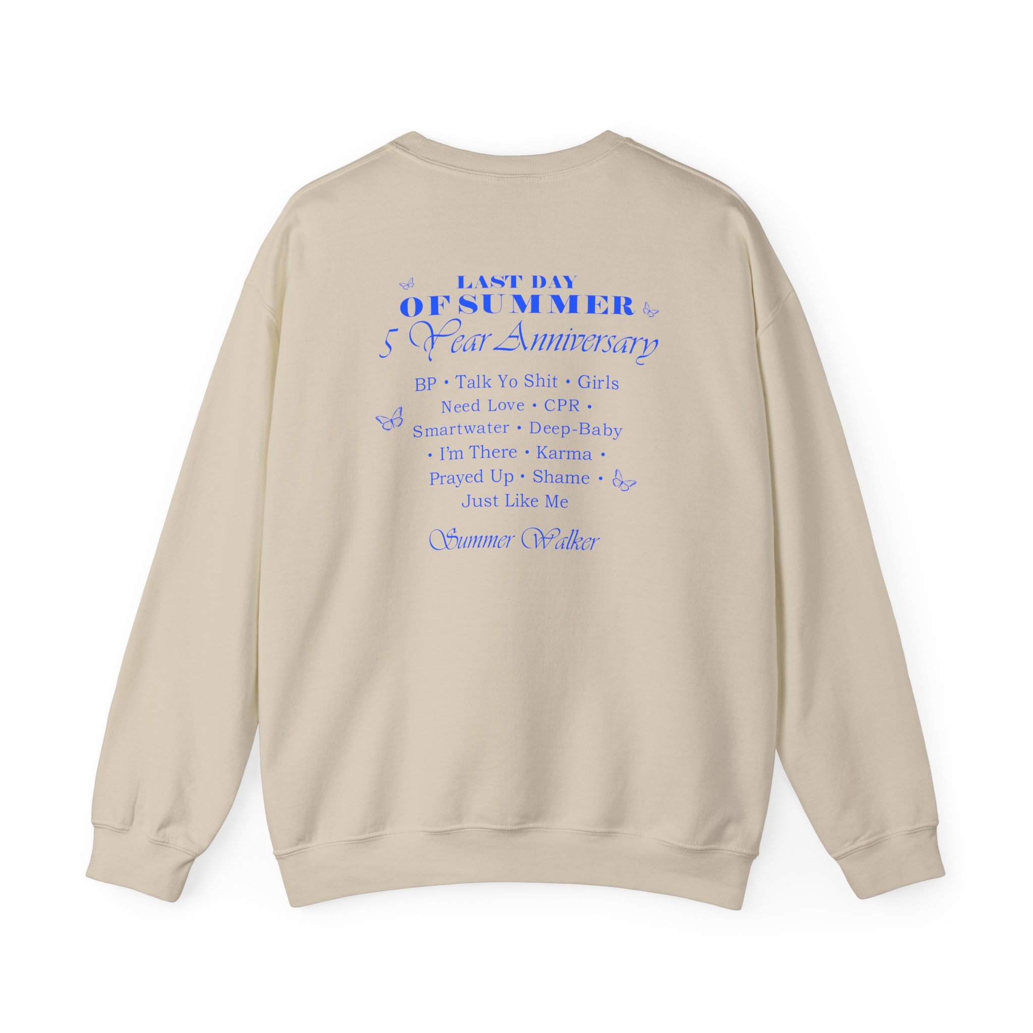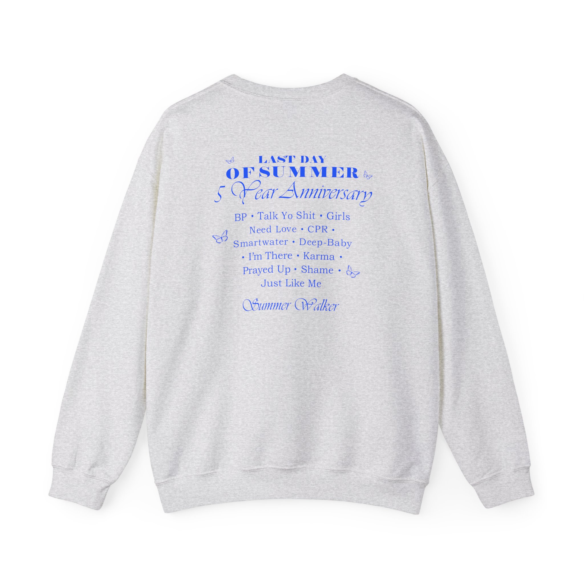 Ideal for any situation, a Summer Walker LDOS 5-Year unisex heavy blend crewneck sweatshirt is pure comfort. These garments are made from polyester and cotton. This combination helps designs come out looking fresh and beautiful. The collar is ribbed knit, so it retains its shape even after washing. There are no itchy side seams on these sweaters.