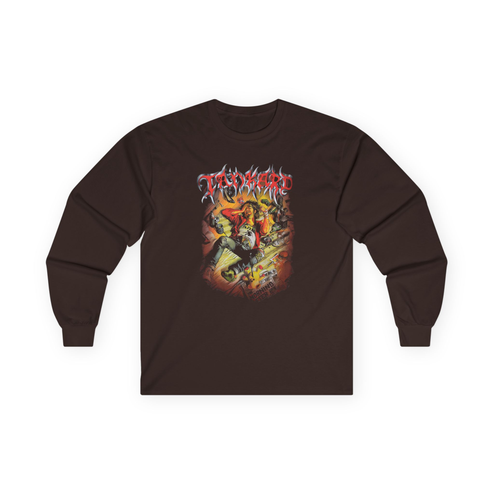 A bit more formal than a standard-issue t-shirt, the Tankard The Morning After ultra cotton long sleeve tee is a clear comfort winner. The sleeves also act as a nice frame. There are no side seams. The shoulders are taped for improved durability. This makes for a good fitting around the shoulders and neck. The cotton used for these shirts is environmentally friendly.