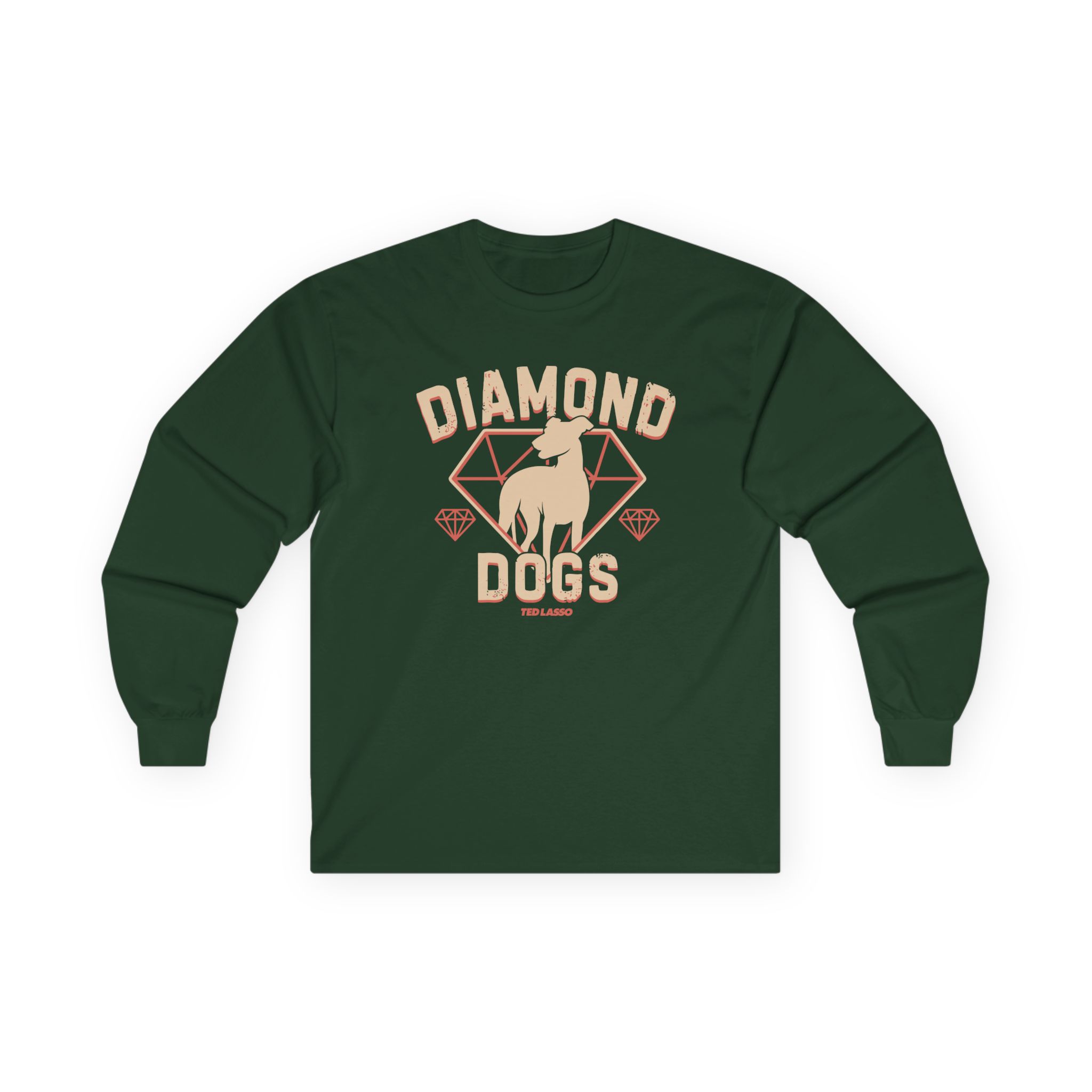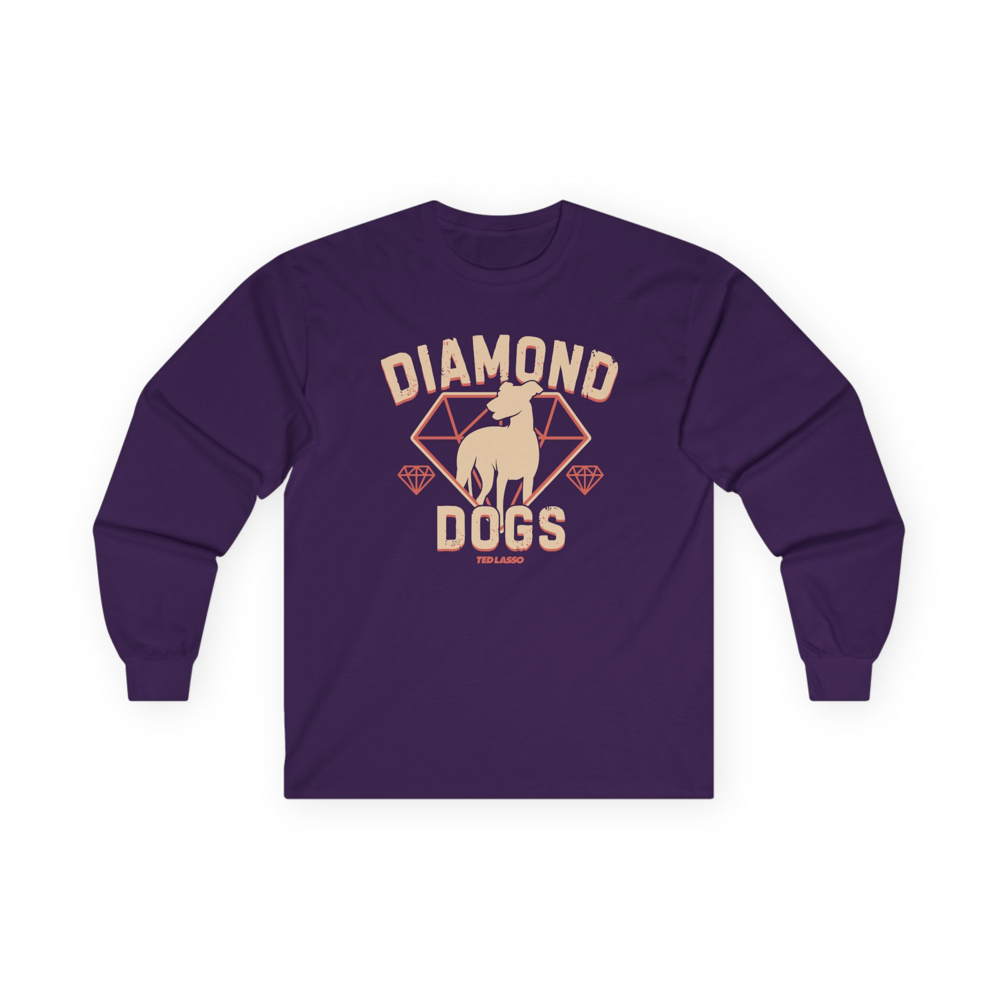 A bit more formal than a standard-issue t-shirt, the Ted Lasso Diamond Dogs ultra cotton long sleeve tee is a clear comfort winner. The sleeves also act as a nice frame. There are no side seams. The shoulders are taped for improved durability. This makes for a good fitting around the shoulders and neck. The cotton used for these shirts is environmentally friendly.