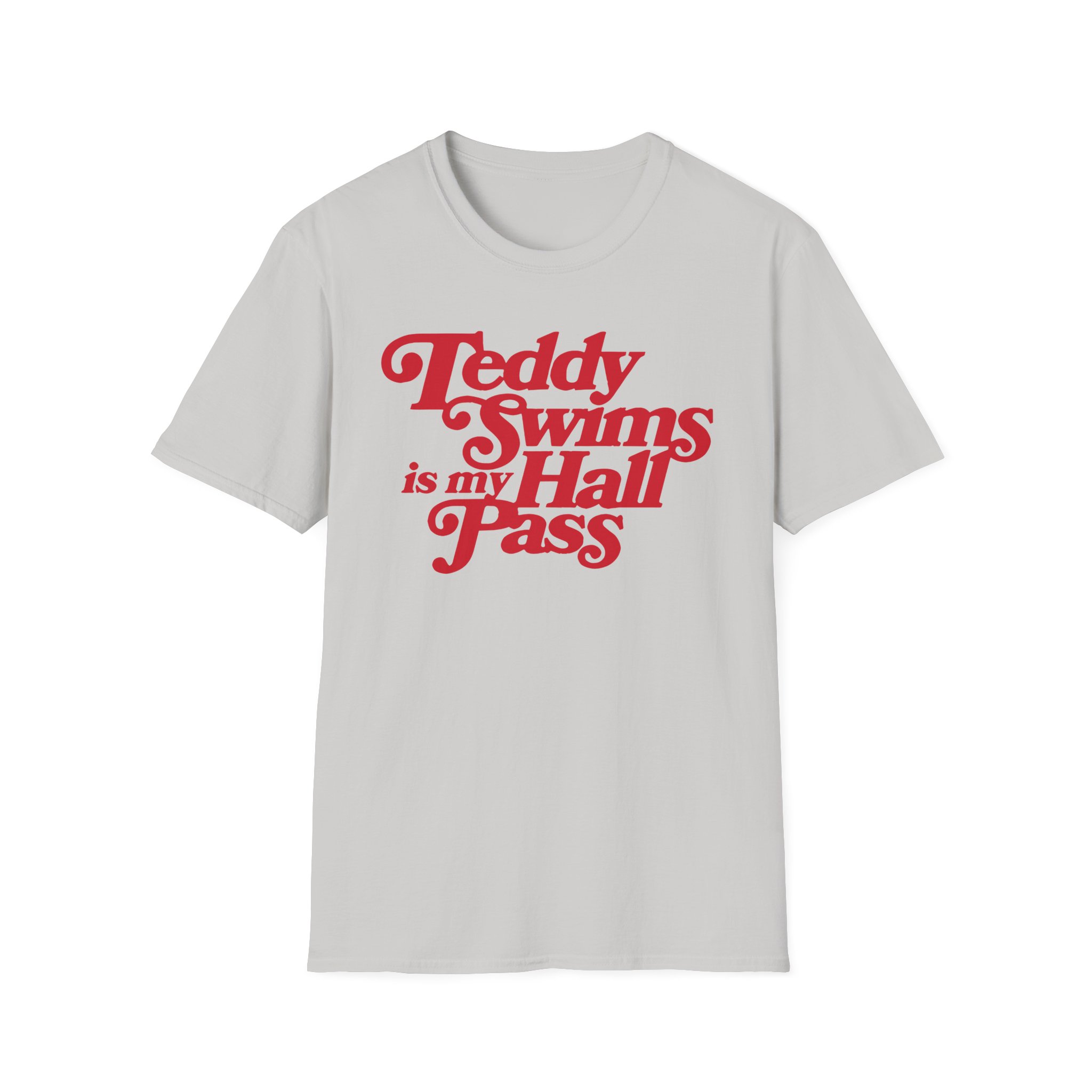 The Teddy Swims is My Hall Pass unisex soft-style t-shirt puts a new spin on casual comfort. Made from very soft materials, this tee is 100% cotton for solid colors. Heather colors and sports grey include polyester. The shoulders have twill tape for improved durability. There are no side seams. The collar is made with ribbed knitting to prevent curling damage.