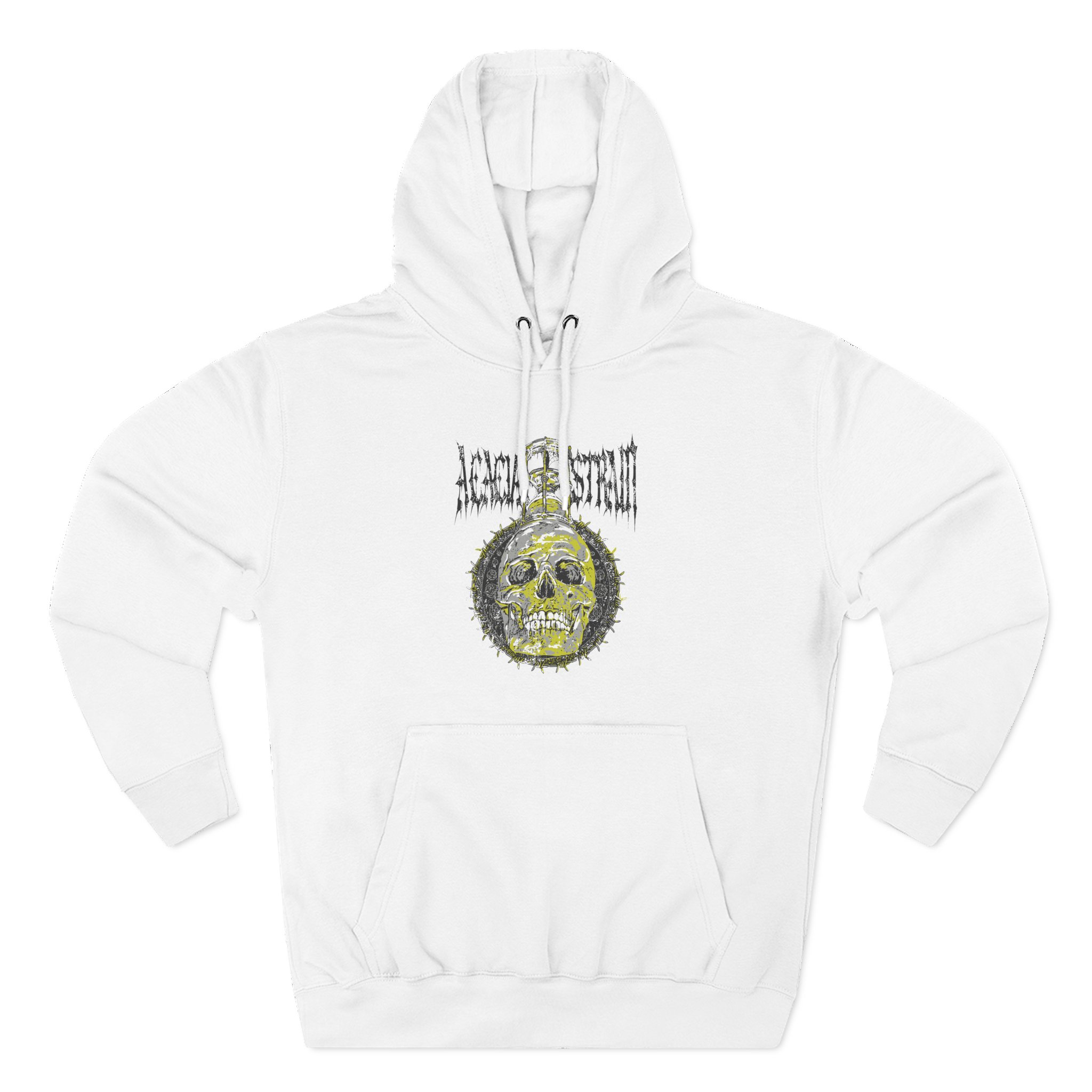 Beat the cold with this The Acacia Strain Hourglass premium pullover hoodie that’s just the right layer of warm and cozy. Made with three-panel fleece lining, this pullover is double stitched for durability and roomy. Pick one in your favorite color to match your style.