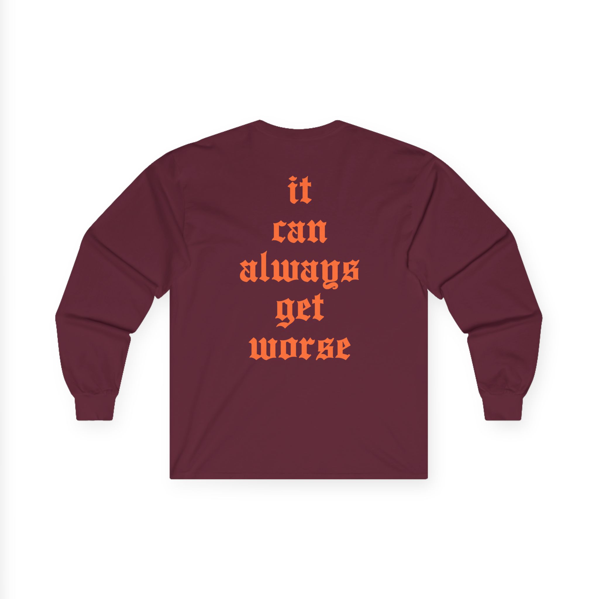A bit more formal than a standard-issue t-shirt, The Acacia Strain It Can Always Get Worse ultra cotton long sleeve tee is a clear comfort winner. The sleeves also act as a nice frame. There are no side seams. The shoulders are taped for improved durability. This makes for a good fitting around the shoulders and neck. The cotton used for these shirts is environmentally friendly.