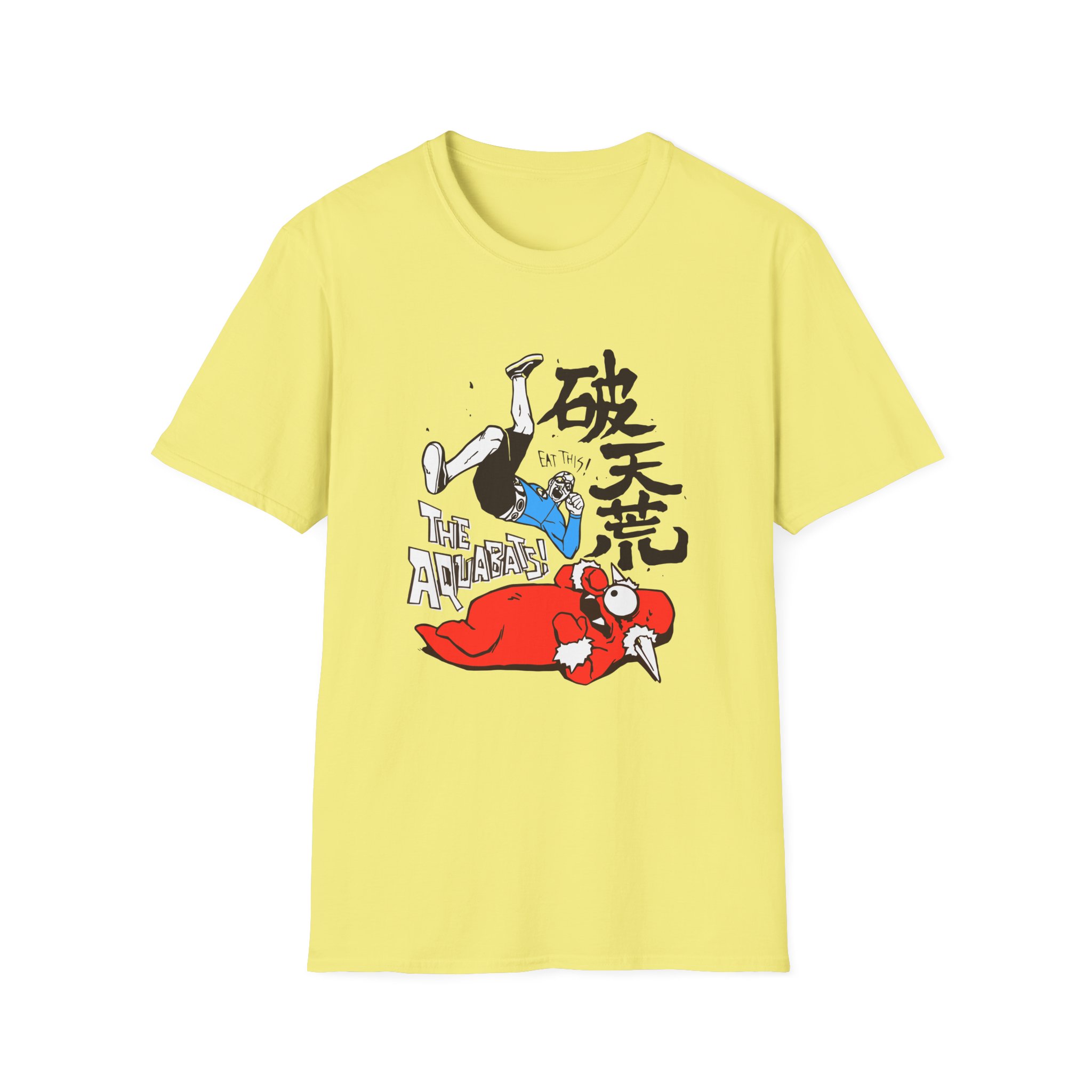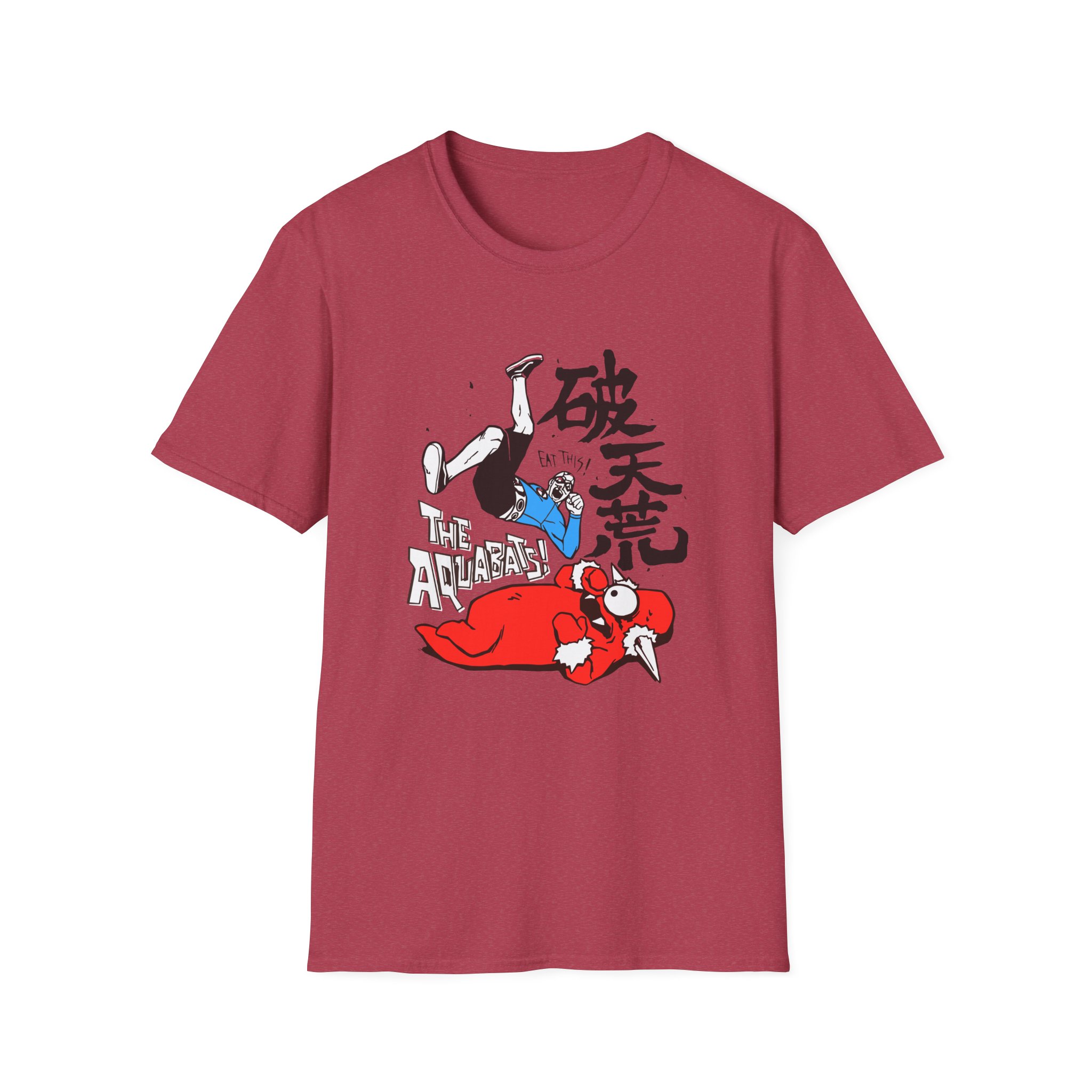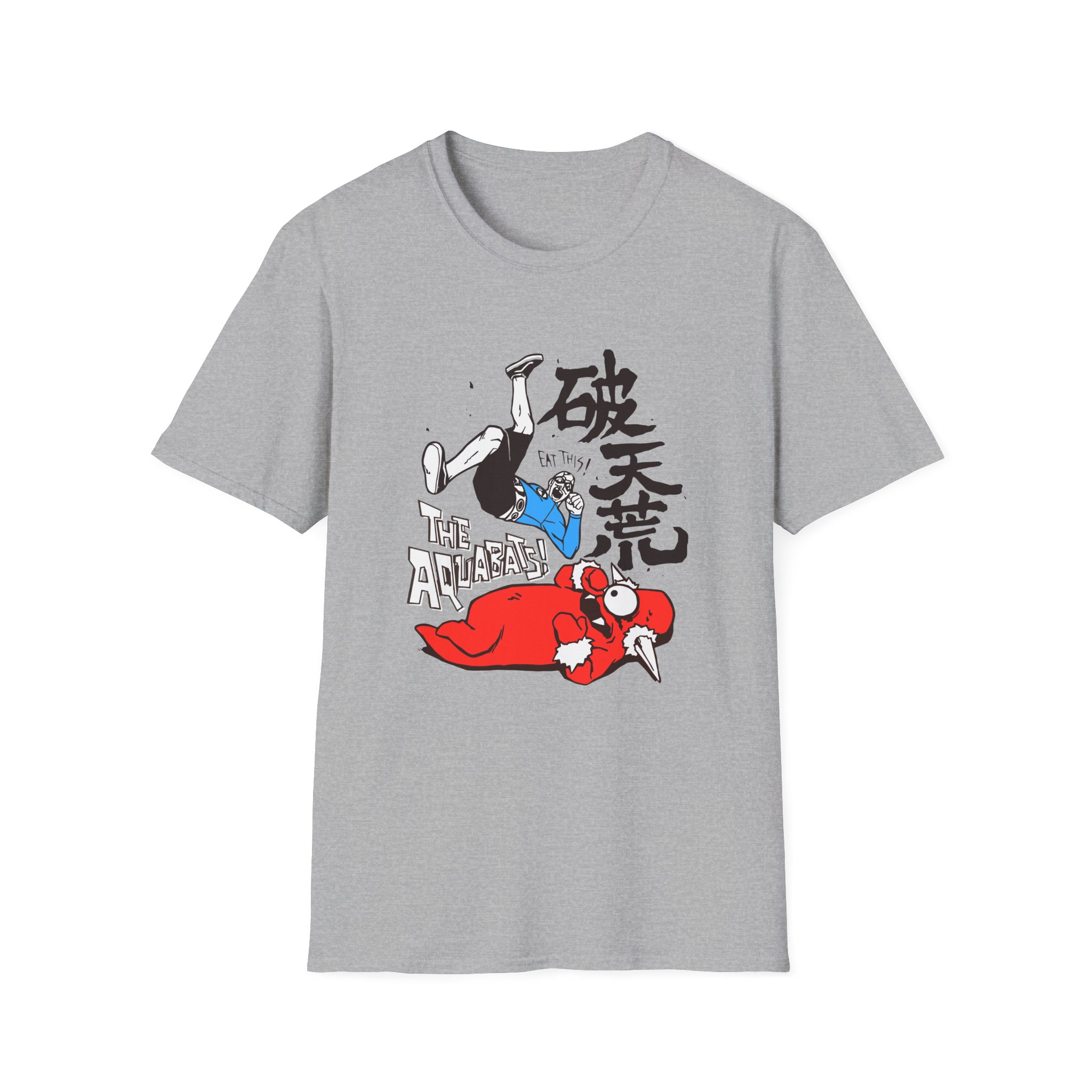 The The Aquabats Elbow Drop! unisex soft-style t-shirt puts a new spin on casual comfort. Made from very soft materials, this tee is 100% cotton for solid colors. Heather colors and sports grey include polyester. The shoulders have twill tape for improved durability. There are no side seams. The collar is made with ribbed knitting to prevent curling damage.