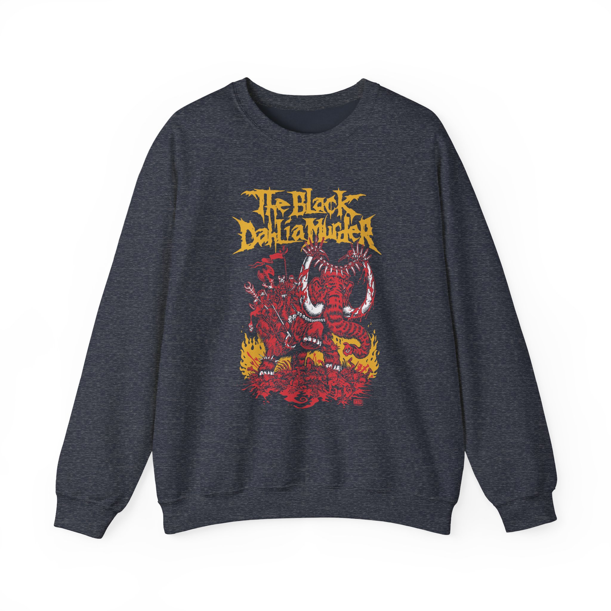 Ideal for any situation, a The Black Dahlia Murder Mammoth’s Hand unisex heavy blend crewneck sweatshirt is pure comfort. These garments are made from polyester and cotton. This combination helps designs come out looking fresh and beautiful. The collar is ribbed knit, so it retains its shape even after washing. There are no itchy side seams on these sweaters.