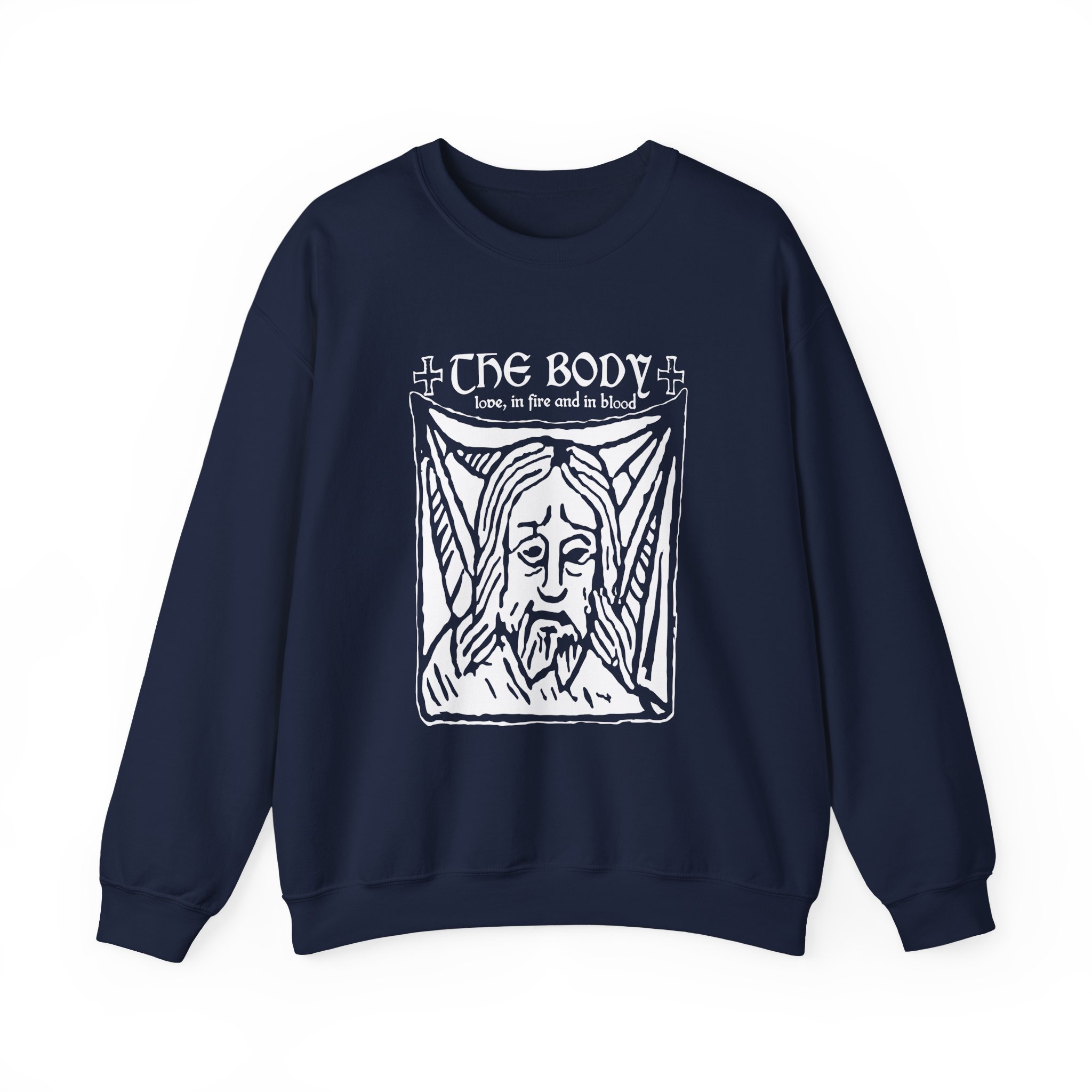 Ideal for any situation, The Body Fire and Blood unisex heavy blend crewneck sweatshirt is pure comfort. These garments are made from polyester and cotton. This combination helps designs come out looking fresh and beautiful. The collar is ribbed knit, so it retains its shape even after washing. There are no itchy side seams on these sweaters.