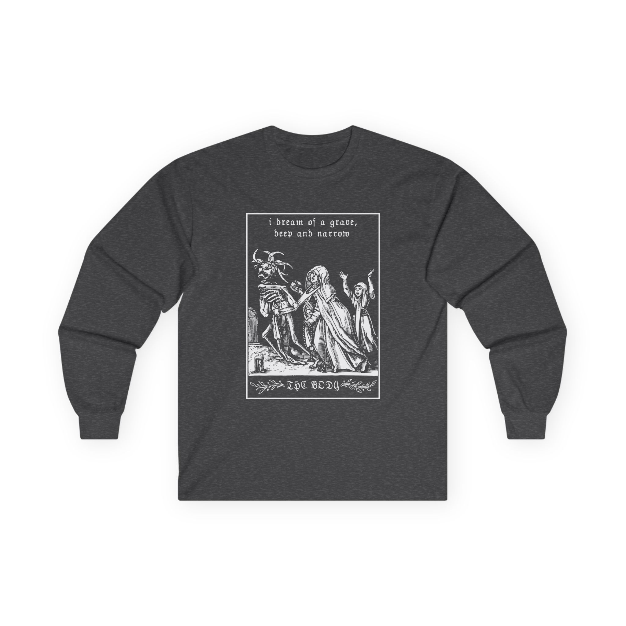 A bit more formal than a standard-issue t-shirt, The Body Grave ultra cotton long sleeve tee is a clear comfort winner. The sleeves also act as a nice frame. There are no side seams. The shoulders are taped for improved durability. This makes for a good fitting around the shoulders and neck. The cotton used for these shirts is environmentally friendly.