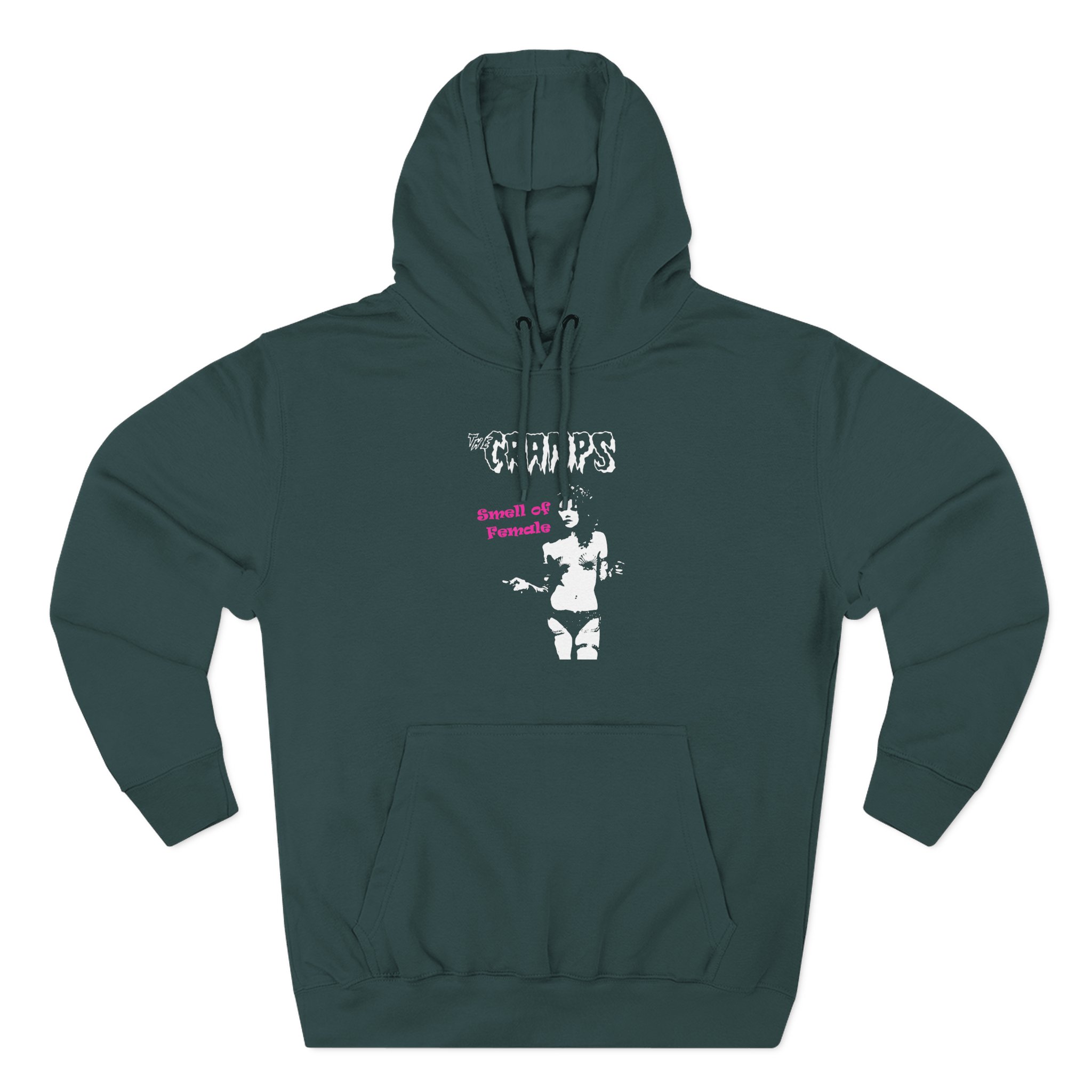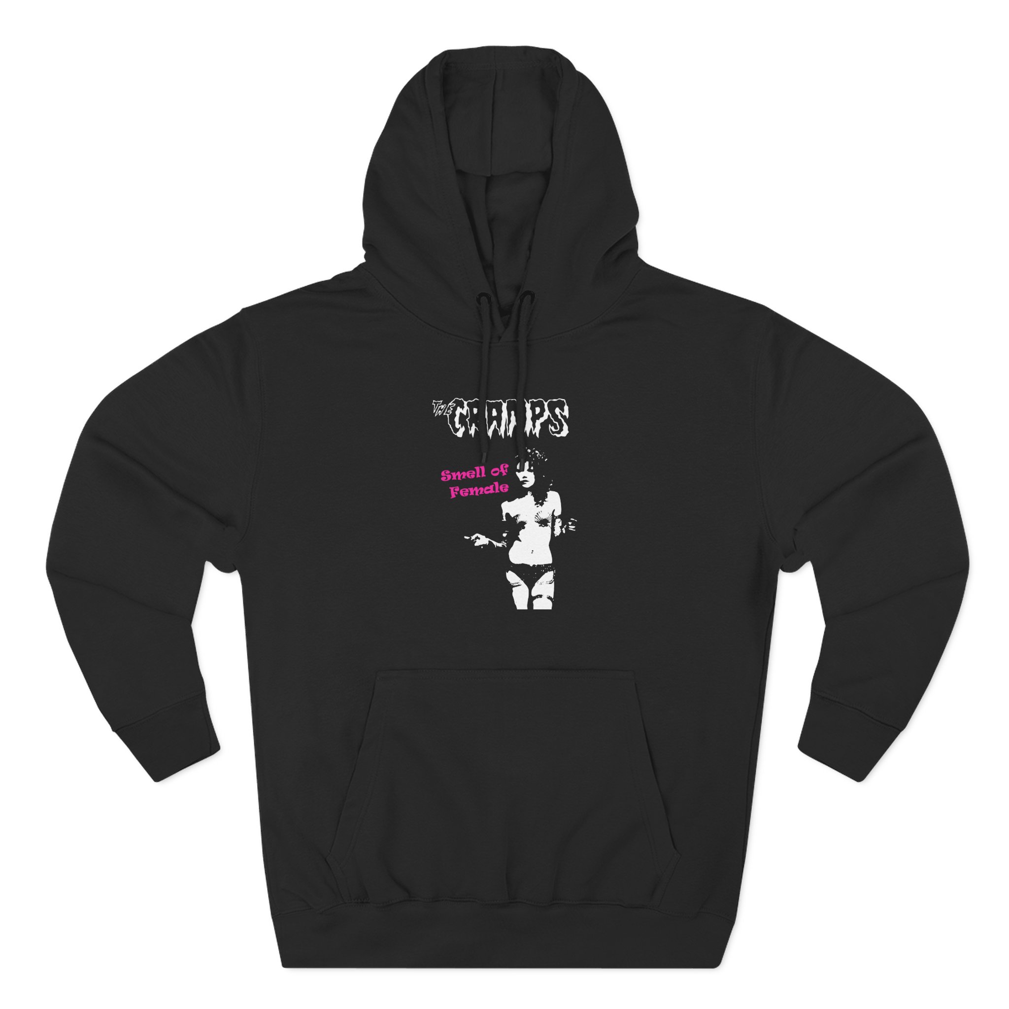 Beat the cold with this The Cramps Smell of Female premium pullover hoodie that’s just the right layer of warm and cozy. Made with three-panel fleece lining, this pullover is double stitched for durability and roomy. Pick one in your favorite color to match your style.