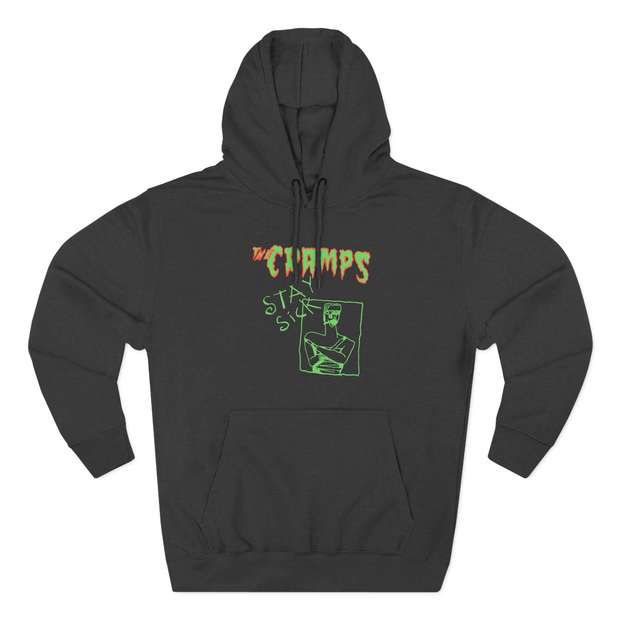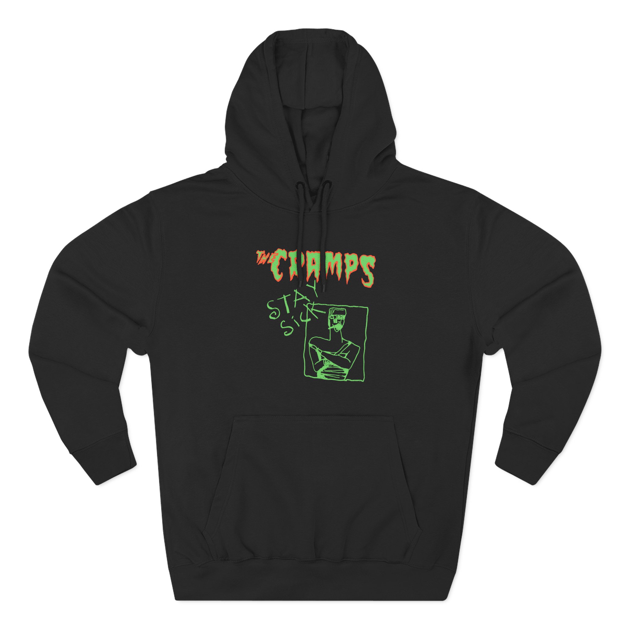 Beat the cold with this The Cramps Stay Sick premium pullover hoodie that’s just the right layer of warm and cozy. Made with three-panel fleece lining, this pullover is double stitched for durability and roomy. Pick one in your favorite color to match your style.