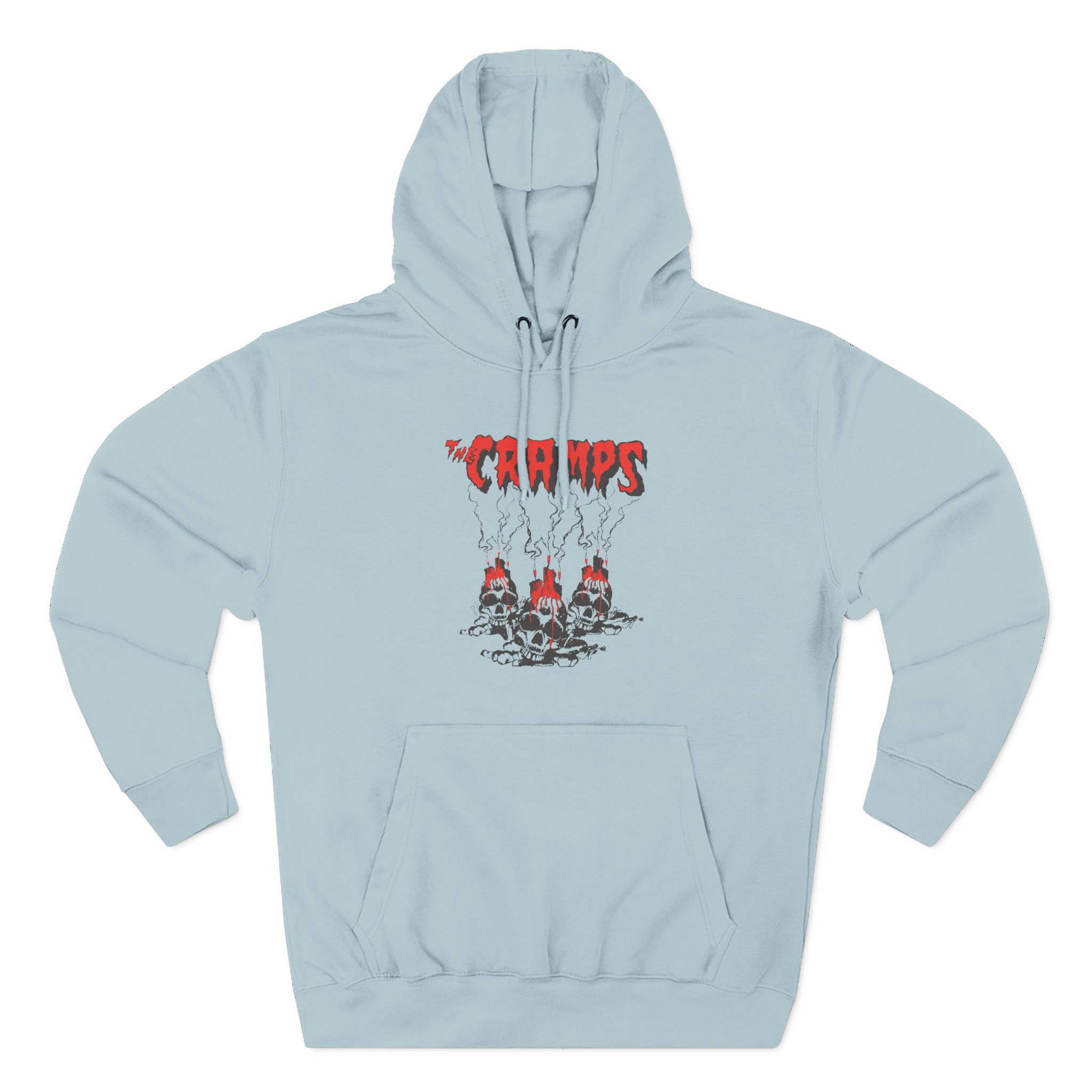 Beat the cold with this The Cramps Voodoo Skulls premium pullover hoodie that’s just the right layer of warm and cozy. Made with three-panel fleece lining, this pullover is double stitched for durability and roomy. Pick one in your favorite color to match your style.