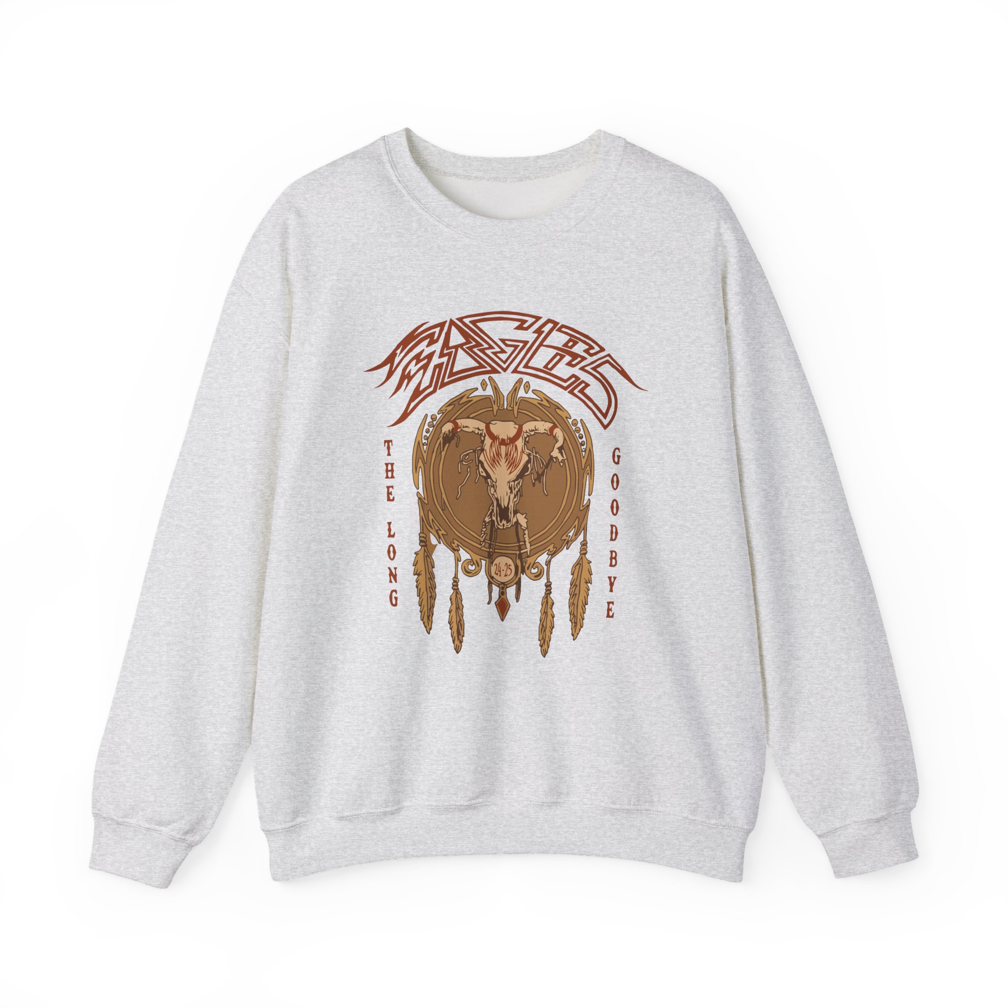 Ideal for any situation, The Eagles Sphere Dreamcatcher unisex heavy blend crewneck sweatshirt is pure comfort. These garments are made from polyester and cotton. This combination helps designs come out looking fresh and beautiful. The collar is ribbed knit, so it retains its shape even after washing. There are no itchy side seams on these sweaters.