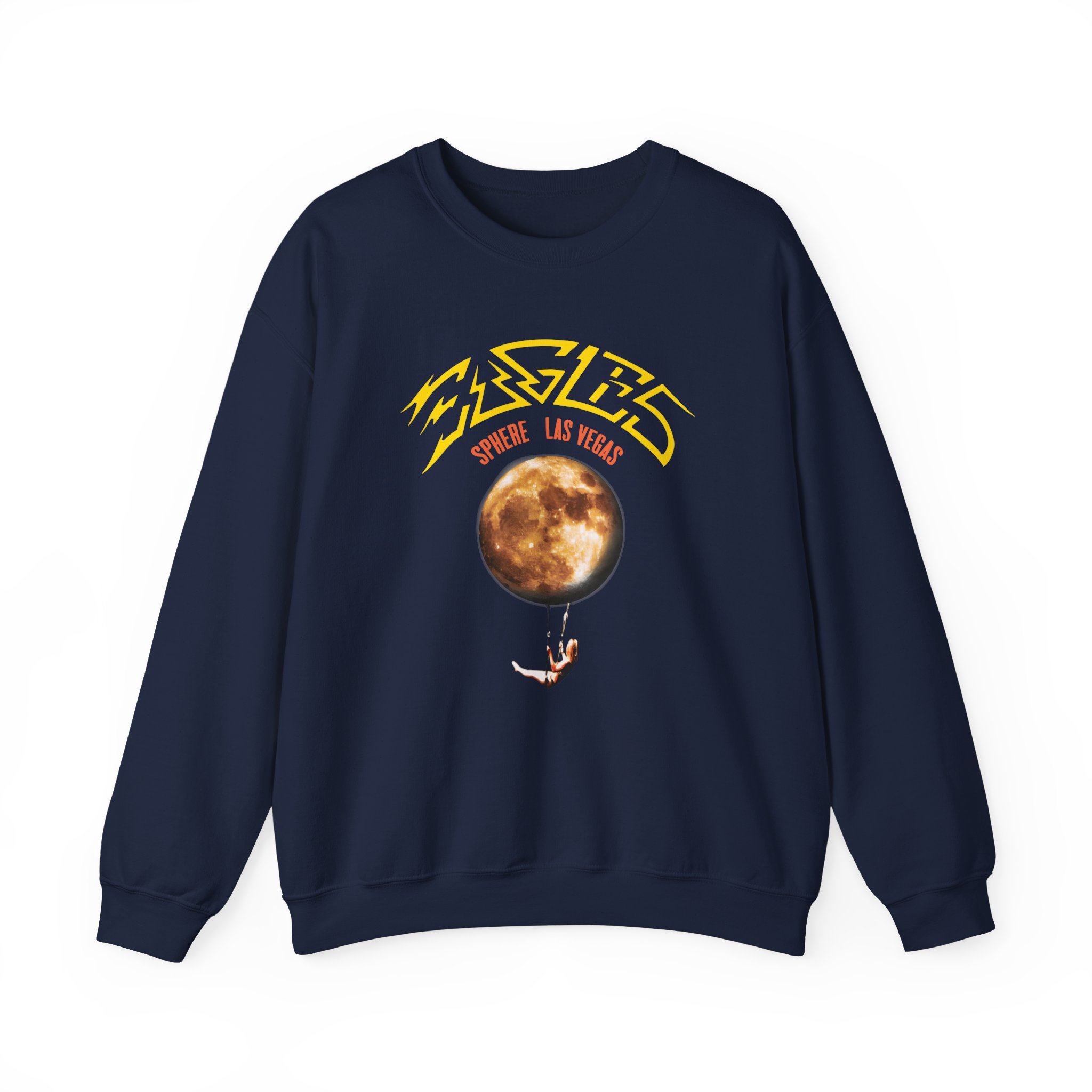 Ideal for any situation, The Eagles Sphere Moon Trapeze unisex heavy blend crewneck sweatshirt is pure comfort. These garments are made from polyester and cotton. This combination helps designs come out looking fresh and beautiful. The collar is ribbed knit, so it retains its shape even after washing. There are no itchy side seams on these sweaters.