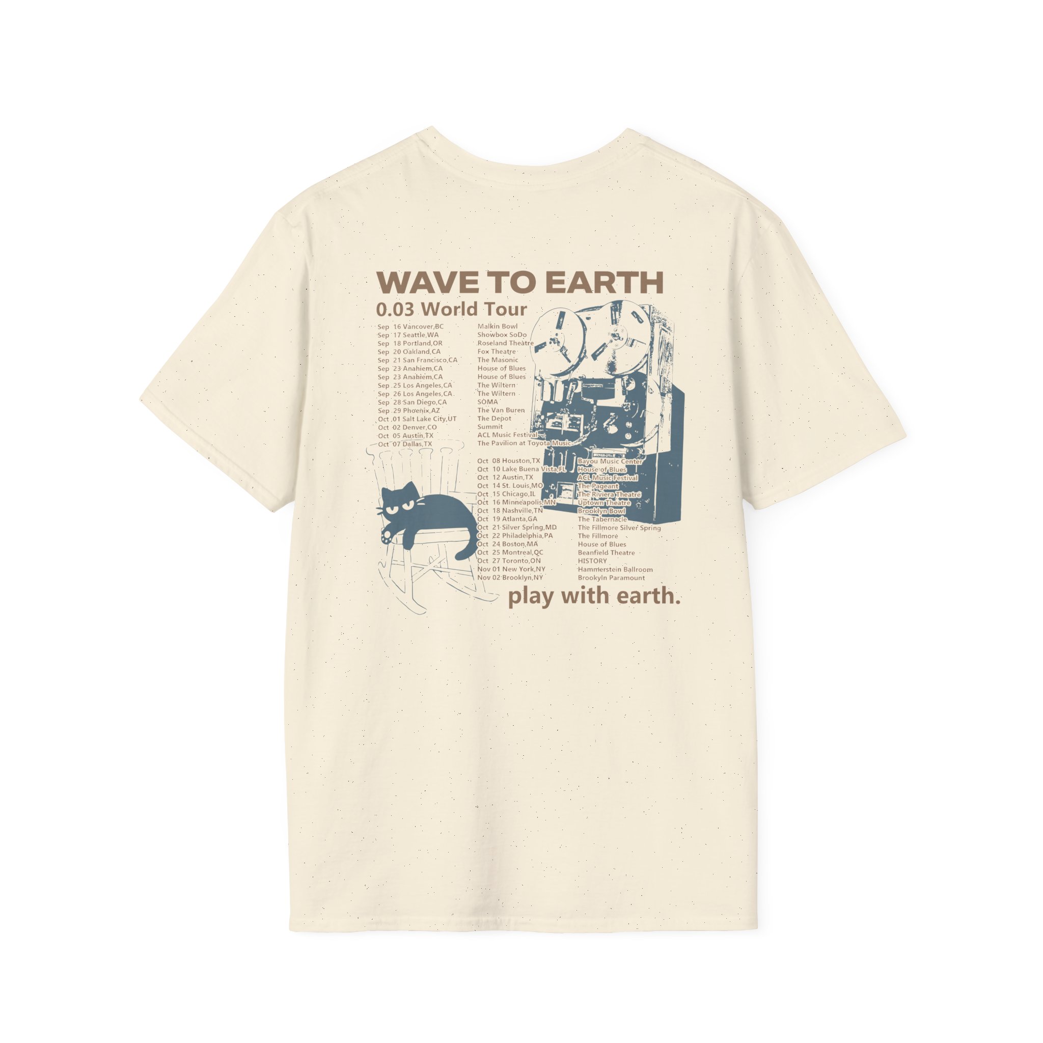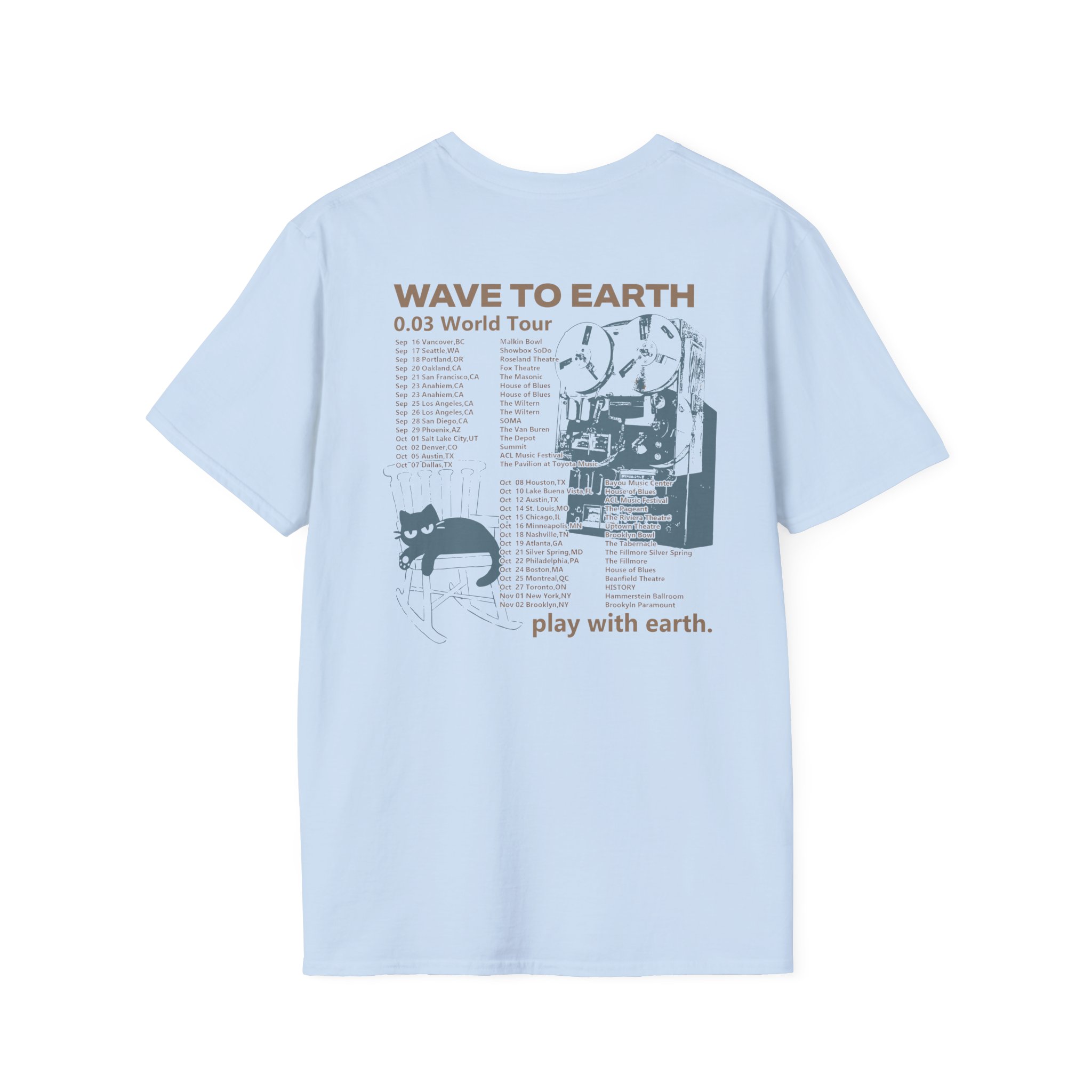 The Wave to Earth 0.03 Na Tour unisex soft-style t-shirt puts a new spin on casual comfort. Made from very soft materials, this tee is 100% cotton for solid colors. Heather colors and sports grey include polyester. The shoulders have twill tape for improved durability. There are no side seams. The collar is made with ribbed knitting to prevent curling damage.