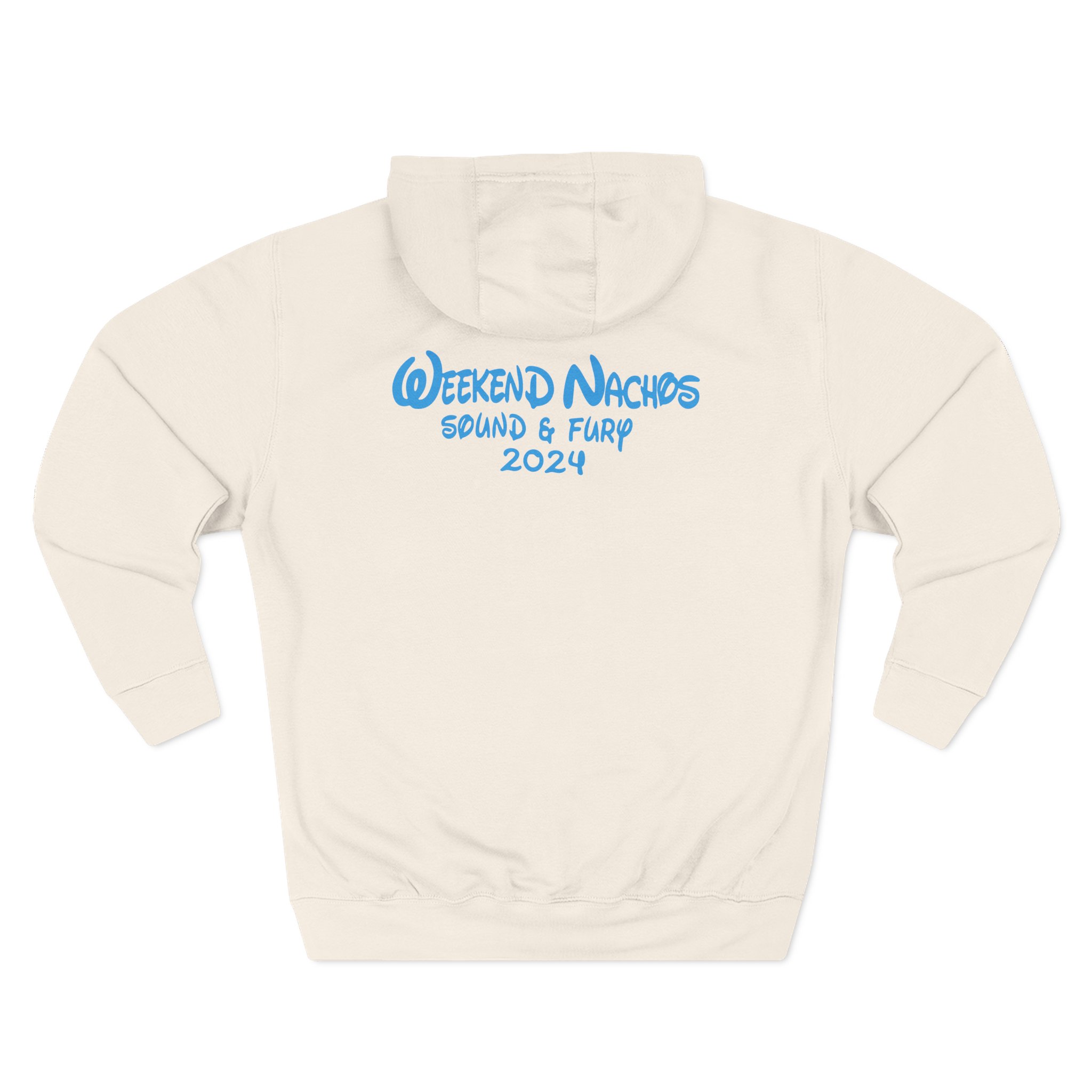 Beat the cold with this Weekend Nachos Sound and Fury premium pullover hoodie that’s just the right layer of warm and cozy. Made with three-panel fleece lining, this pullover is double stitched for durability and roomy. Pick one in your favorite color to match your style.